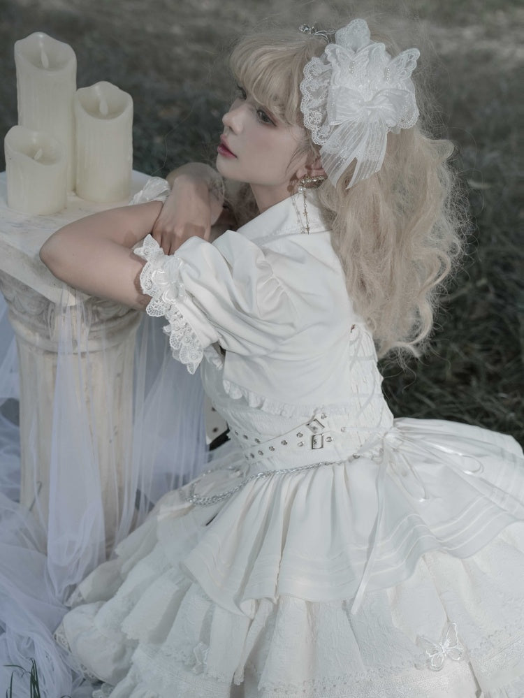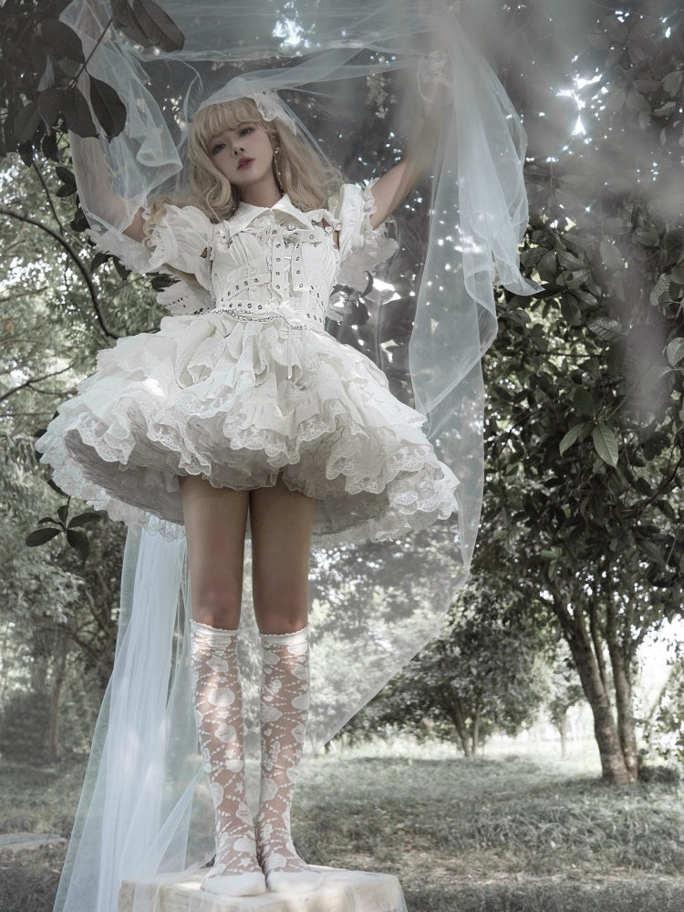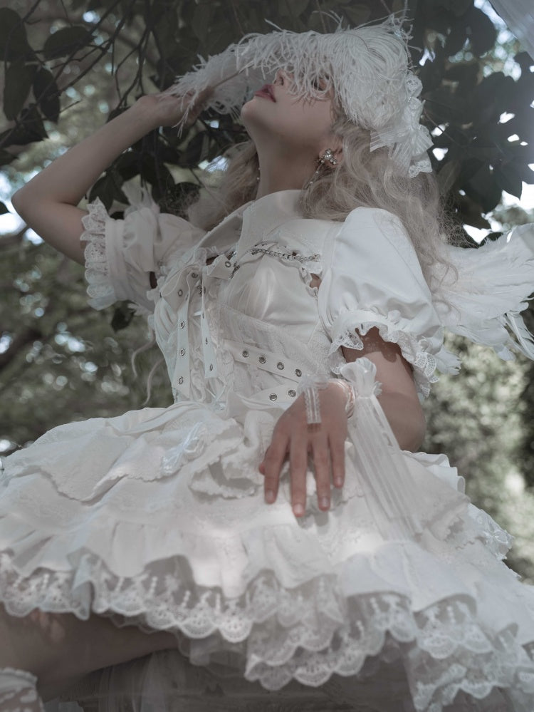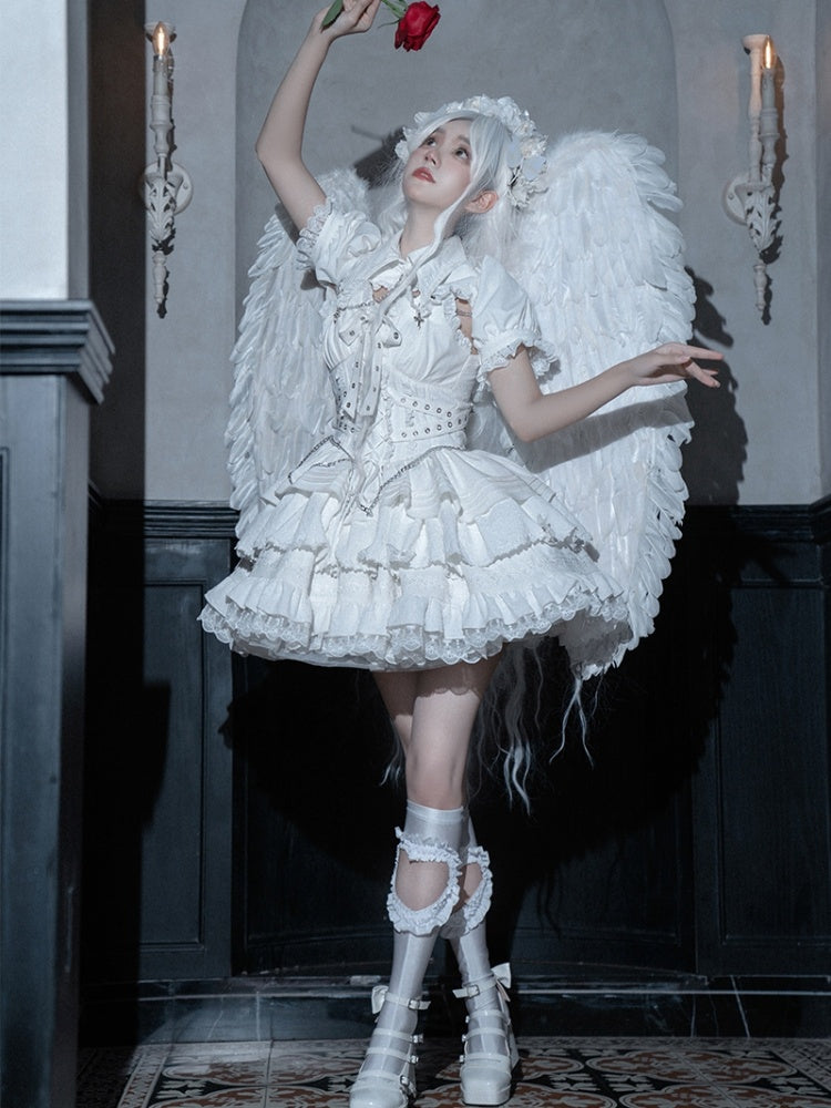 ホワイトゴスショートジャンパースカートで、あなたの内なる反逆心を解き放ちましょう!ウエストのクロスストラップで調節可能なデザインで、完璧なフィット感と快適な着心地を実現。キュートでスタイリッシュなスタイルに、エッジの効いたアクセントをプラス。ファッションに敏感なあなたにぴったりのアイテムです。