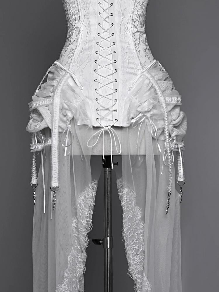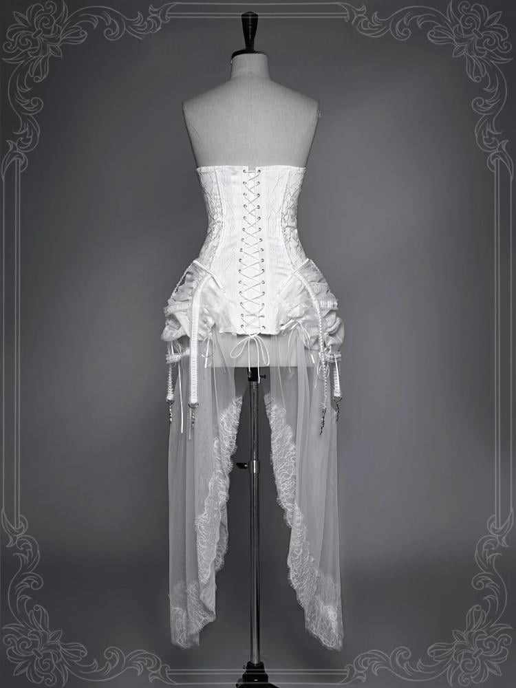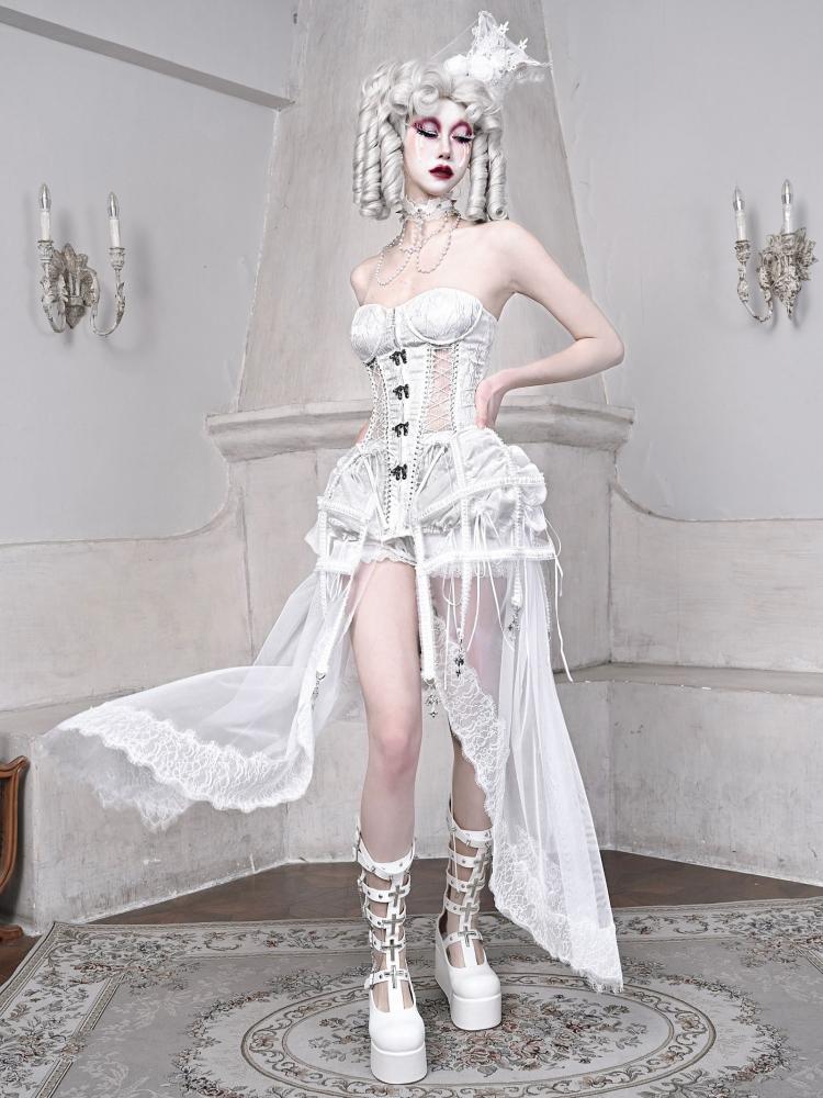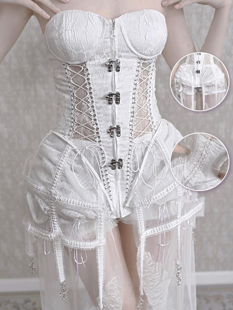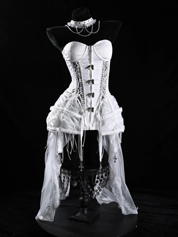 ホワイトゴススタイルのバードケージスカートとビスチェコルセットセット