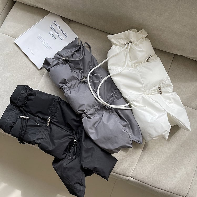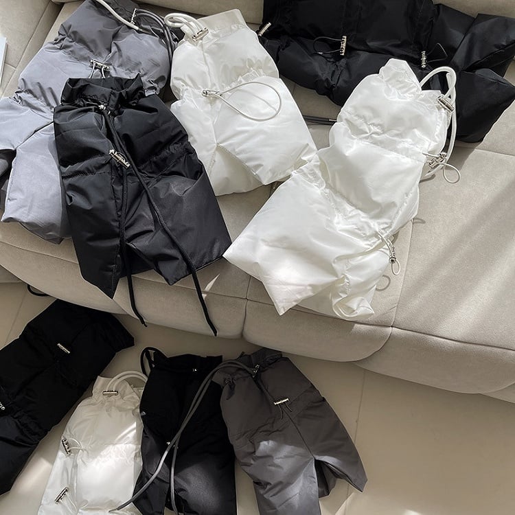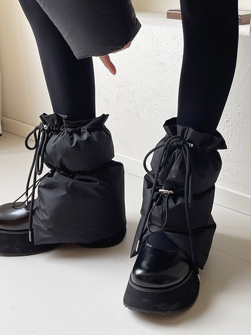 ホワイト/グレー/ブラック ドローストリング 厚手レッグウォーマー