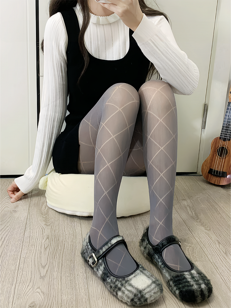 ホワイト/グレーのダイヤモンド柄ホローアウトタイツで、ワードローブに魅力をプラスしませんか?この可愛らしいタイツは、どんなコーディネートにもキュートなアクセントを添え、ダイヤモンド柄とホローアウトデザインが個性的でスタイリッシュな印象を与えます。どんなシーンにもぴったりで、きっと注目を集めること間違いなしです。