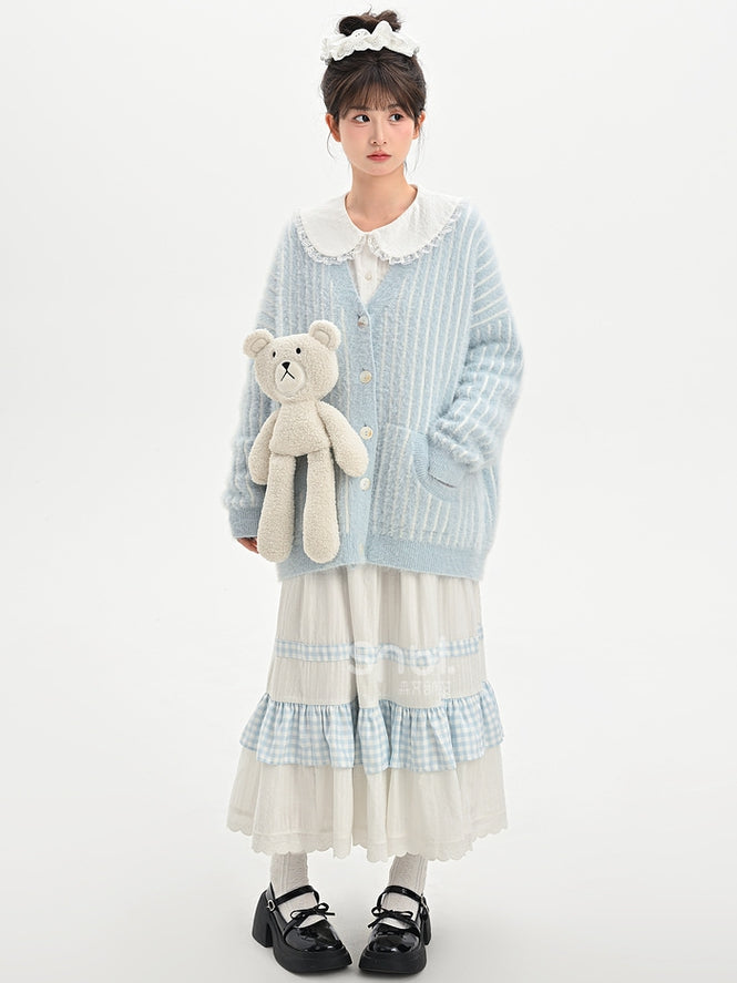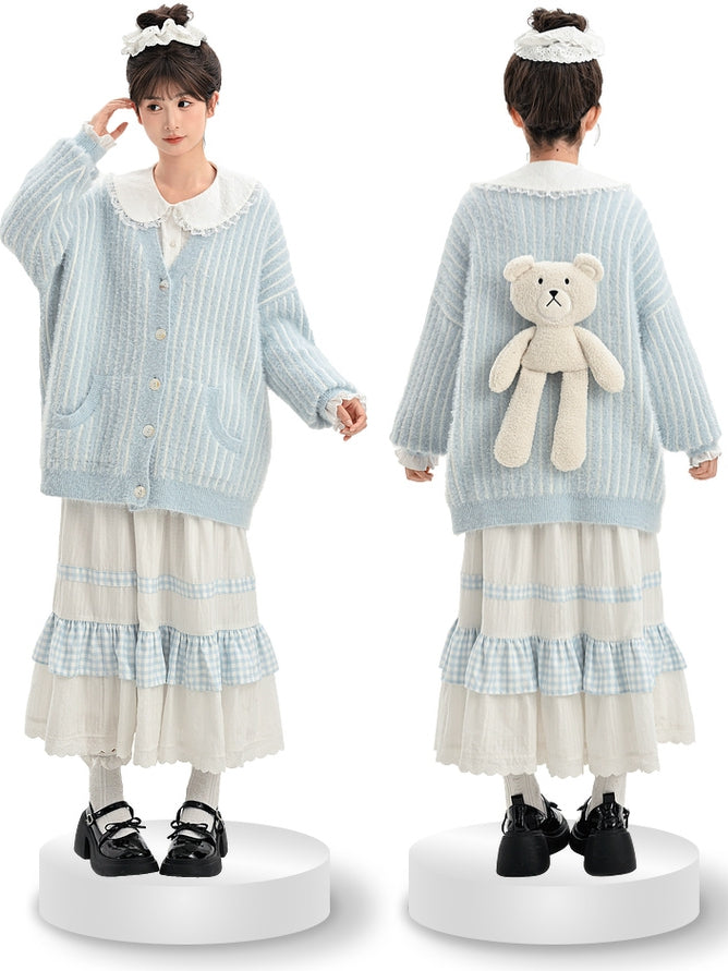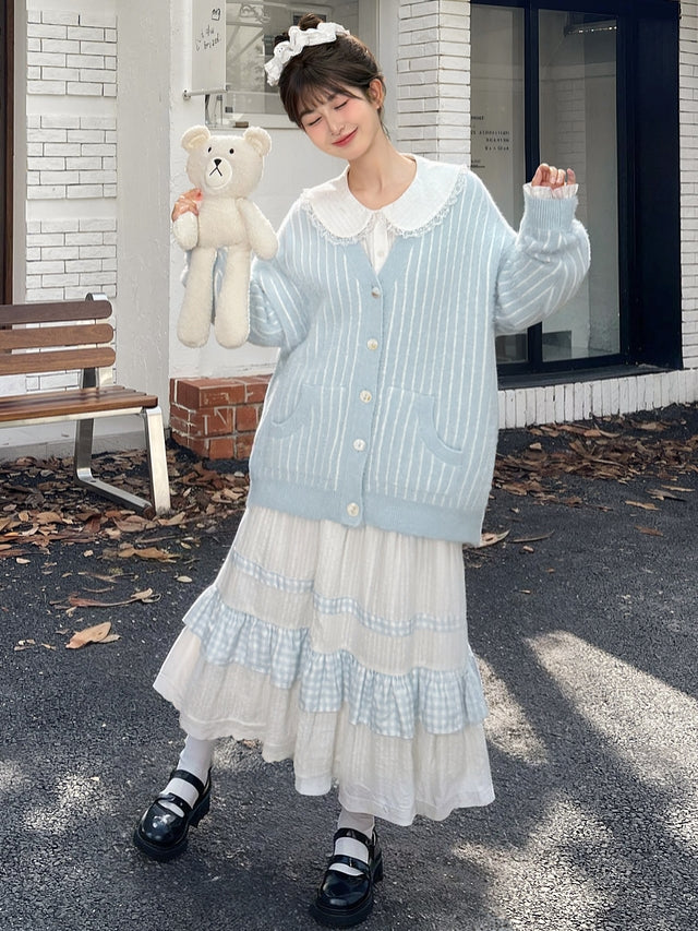 青と白のオールドスクールロリータファッションドレス 蝶結びディテール JSK セット