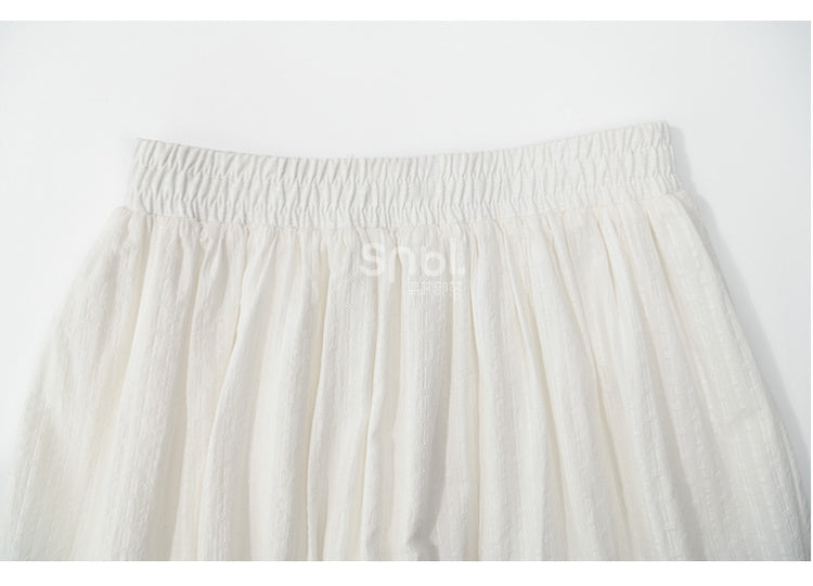 キュートなホワイトのハイウエストレーストリムのスイートスカートは、チェック柄のパッチワークデザインが特徴で、どんな装いにも華やかさを添えてくれます。ハイウエストデザインと繊細なレーストリムが美しいシルエットを演出し、ワードローブに素敵なアクセントを加えてくれます。どんなシーンにもぴったりです!