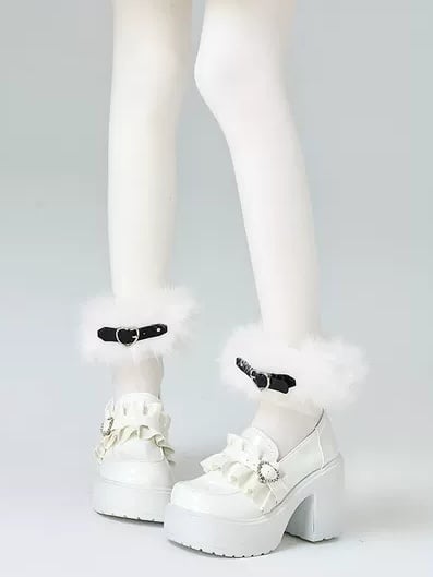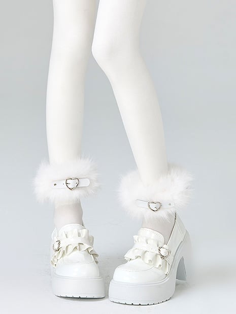 ホワイト ジライケイ ハートバックル シャギーカフス