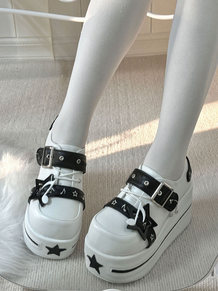 ホワイト ジライケイ スター デザイン バックル ストラップ プラットフォーム シューズ