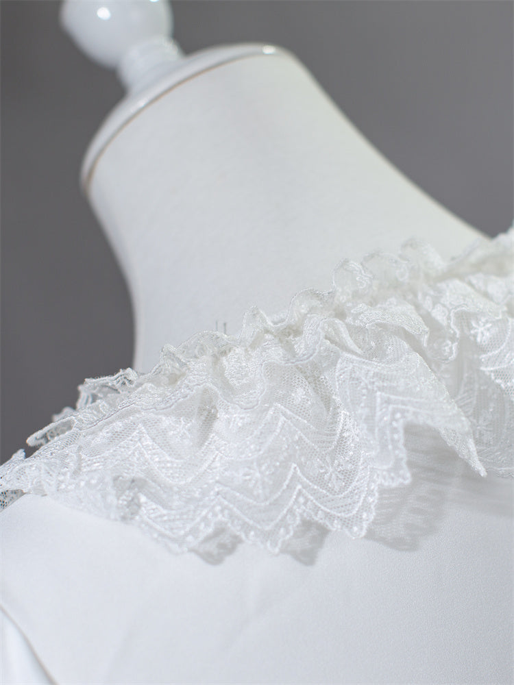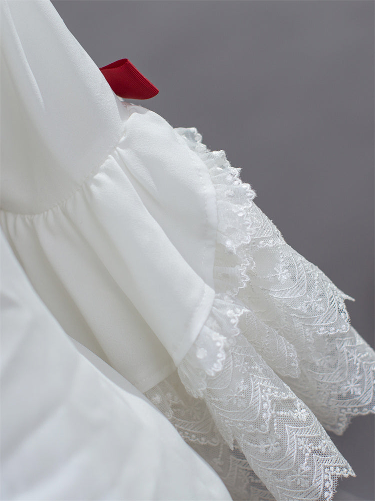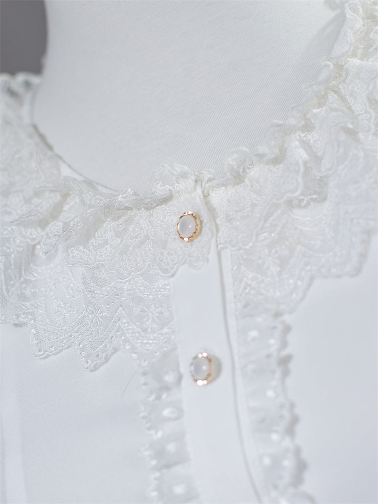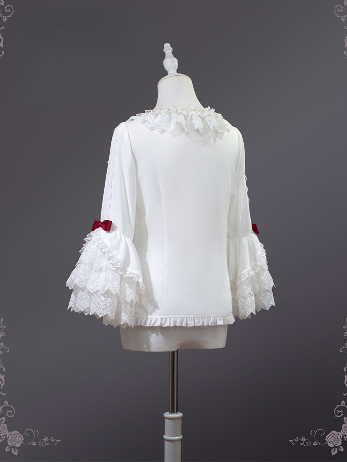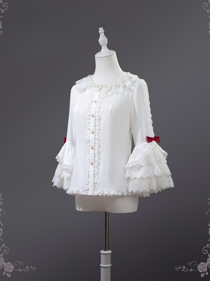 ホワイトレースカラー、レイヤードレース、ベルスリーブのロリータブラウス