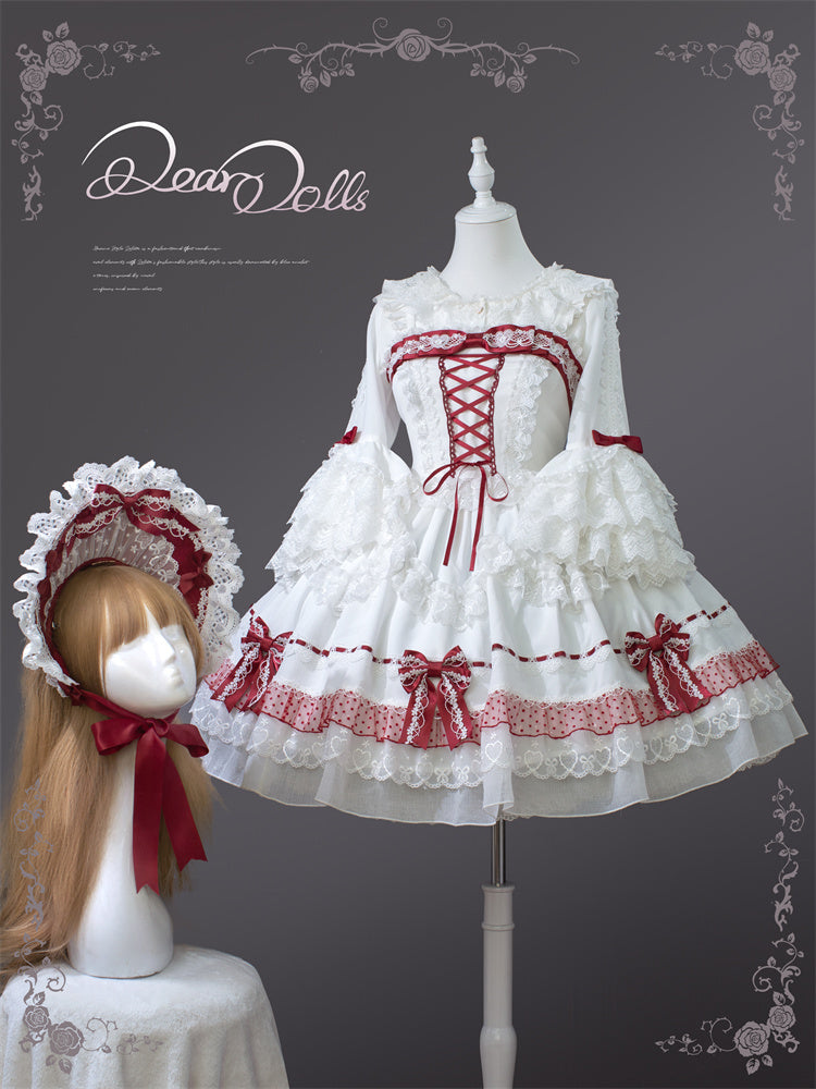 黒と白のオールドスクールロリータファッションドレス蝶結びロリータJSKセット