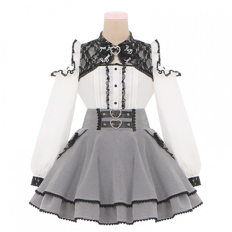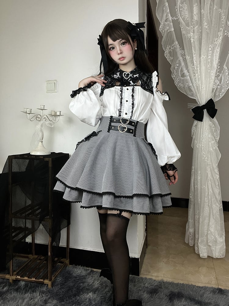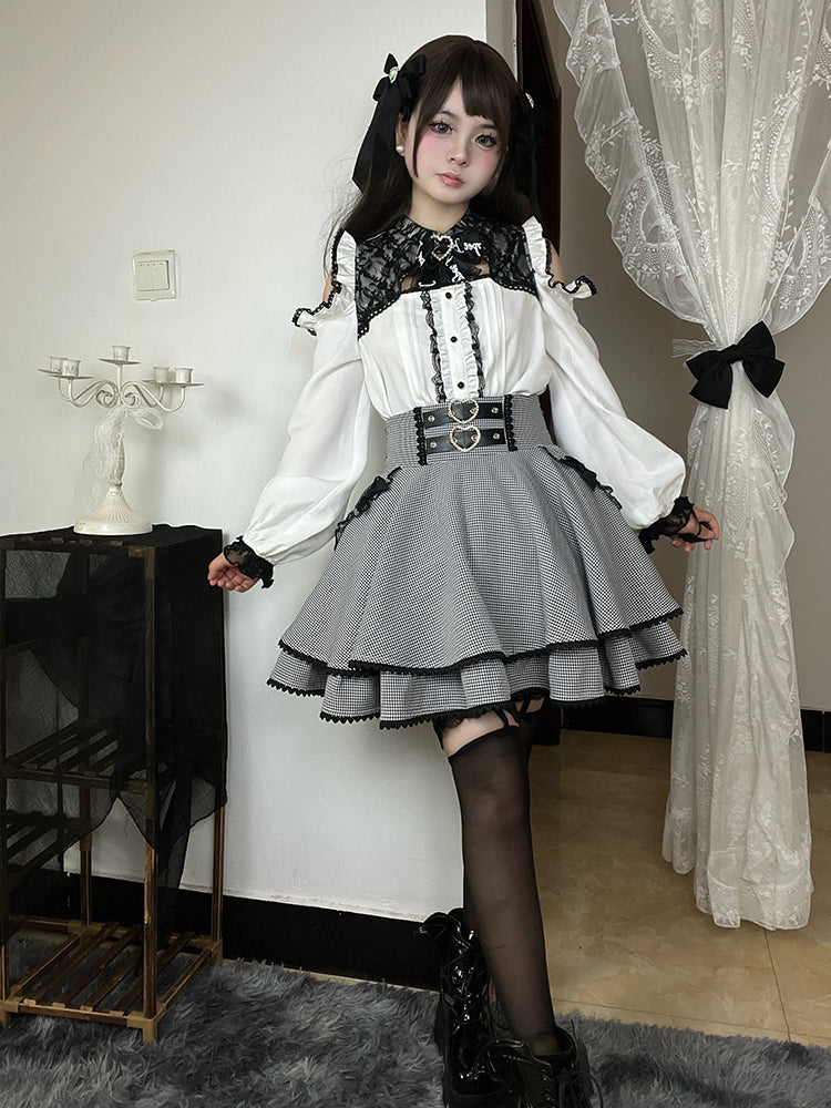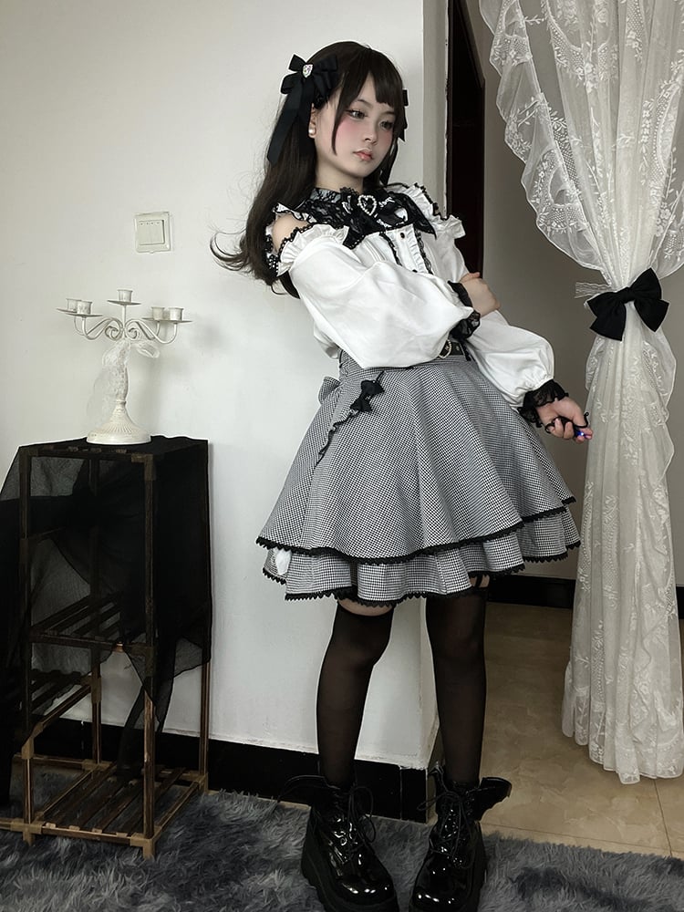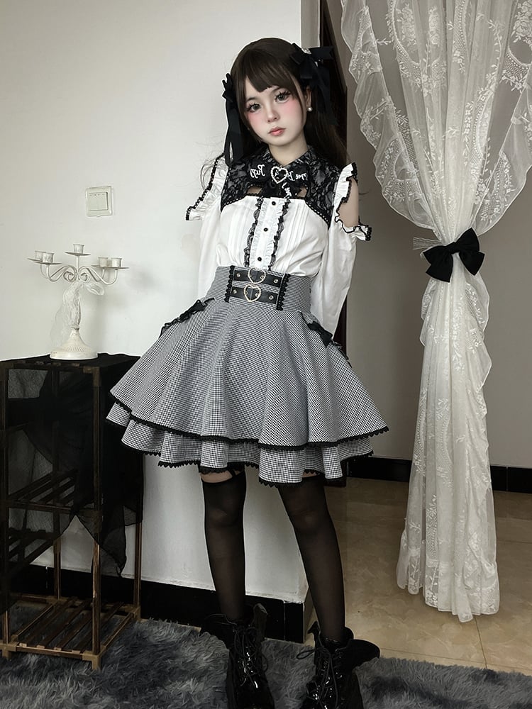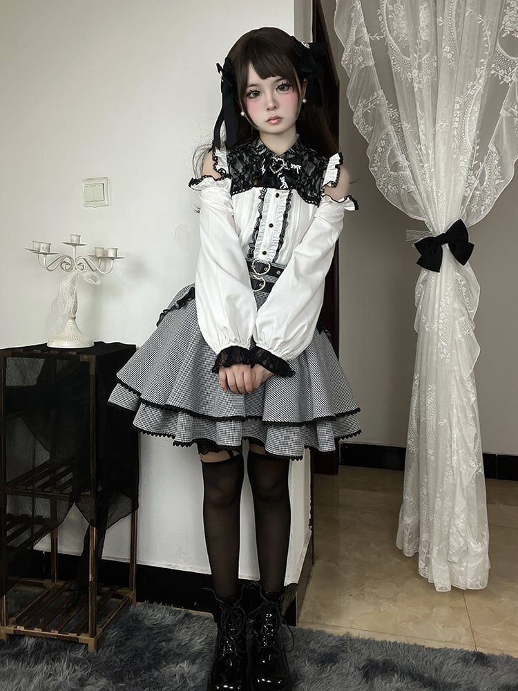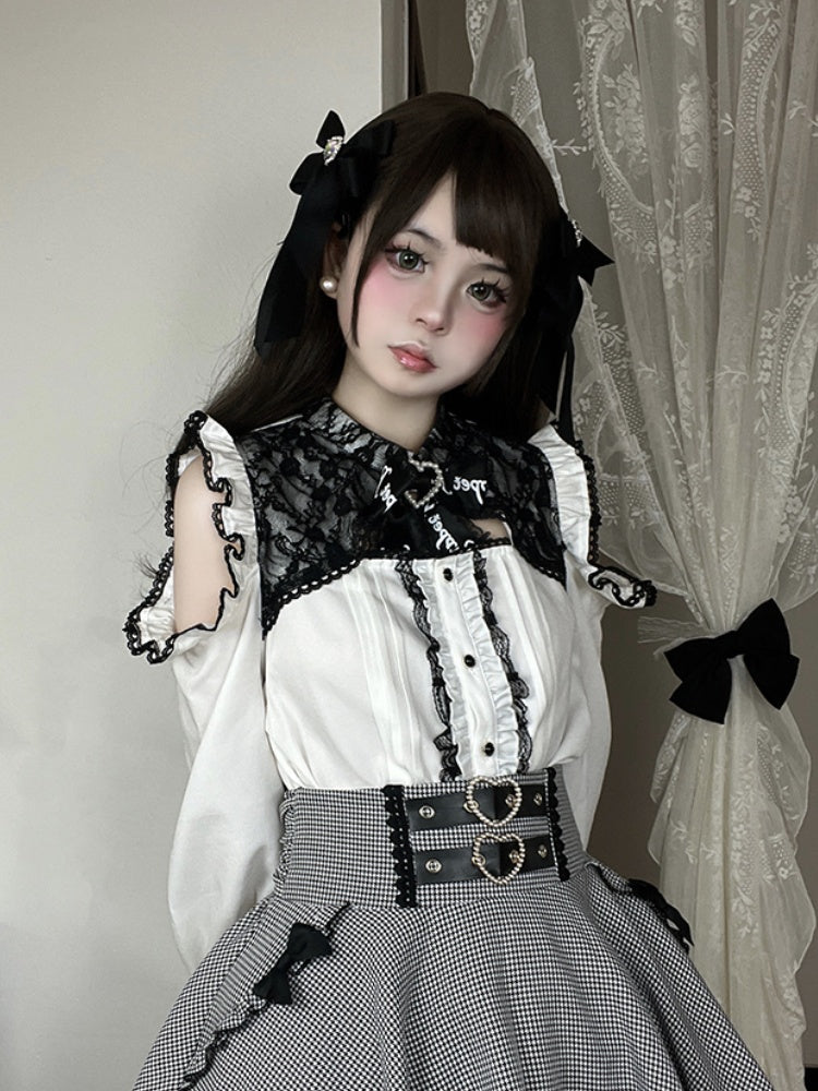 ホワイトレーストリムとカットアウトショルダーが魅力の「Jirai Kei」ブラウスは、どんなワードローブにも合わせやすい一枚です。繊細なレーストリムとカットアウトショルダーが女性らしさを演出し、Jirai Keiスタイルが個性的でスタイリッシュな雰囲気を醸し出します。どんな装いにも遊び心のあるアクセントを添えてくれます。