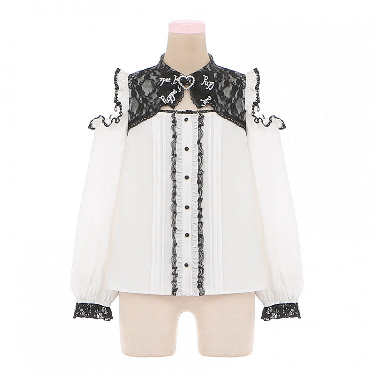 ホワイトレーストリムカットアウトショルダージライケイブラウス