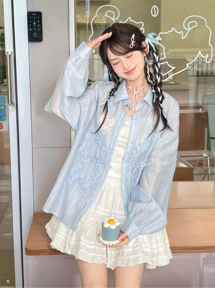青と白のオールドスクールロリータファッションドレス 蝶結びディテール JSK セット