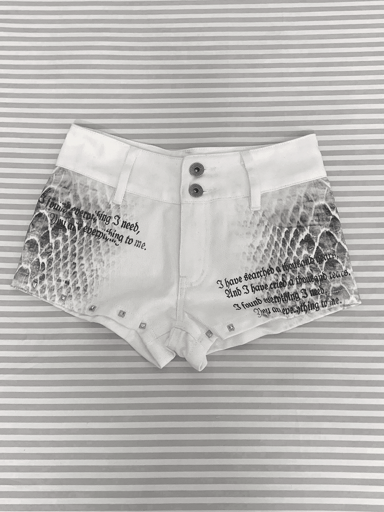 ホワイト ローライズ スネークスキンプリント ミニショーツ