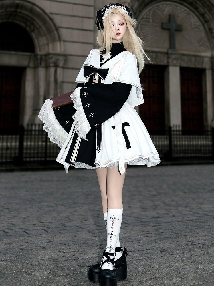 この愛らしいホワイトの修道女ロリータケープは、どんな装いにも甘さをプラスしてくれます。上質な素材で仕立てられており、暖かくスタイリッシュに着こなせます。繊細なレースのトリムと刺繍のディテールが、このケープに魅力的な要素を添えています。キュートでフェミニンな装いにぴったりです。