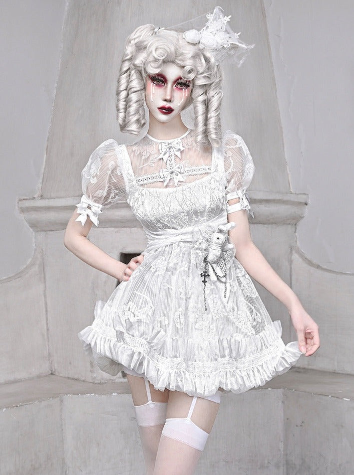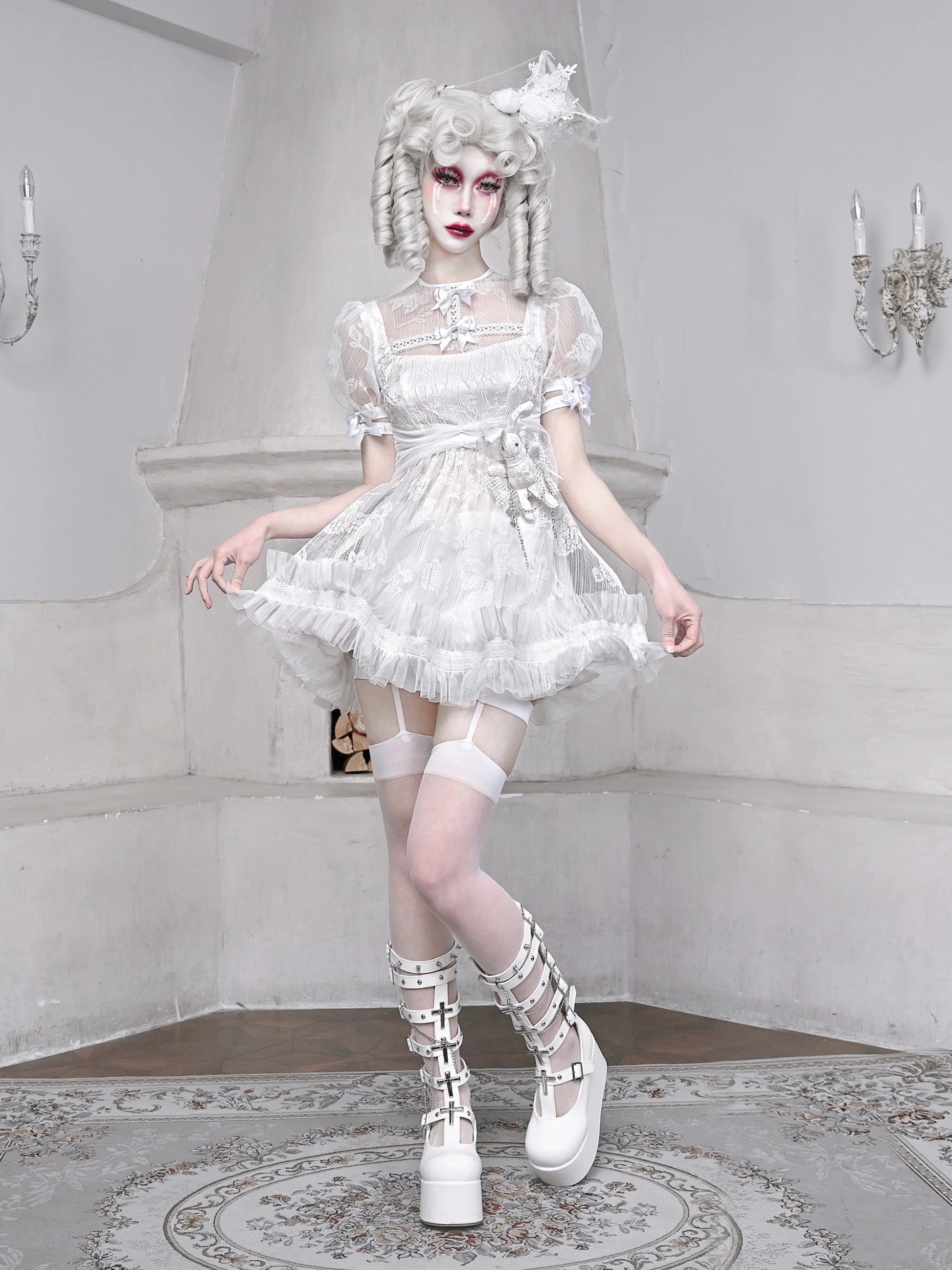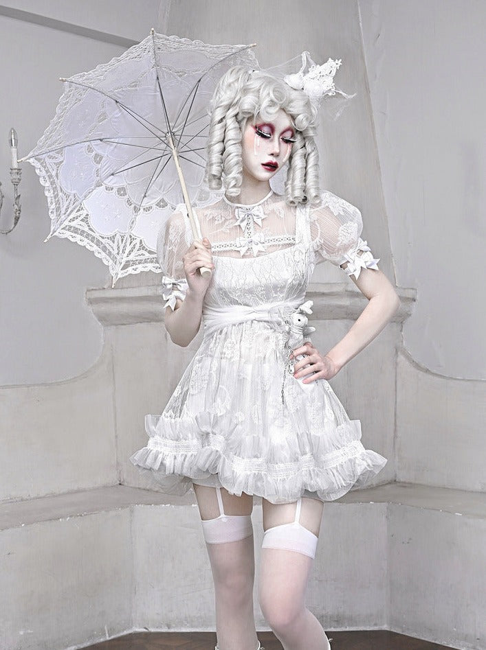ホワイトパンツレースドレス&ピュアインナーで、キュートな装いを演出!繊細なレースのディテールと、快適なピュアインナーの裏地が完璧なフィット感を演出する、オールホワイトのアンサンブル。一日中スタイリッシュで快適な着心地。どんなシーンにもぴったりです。