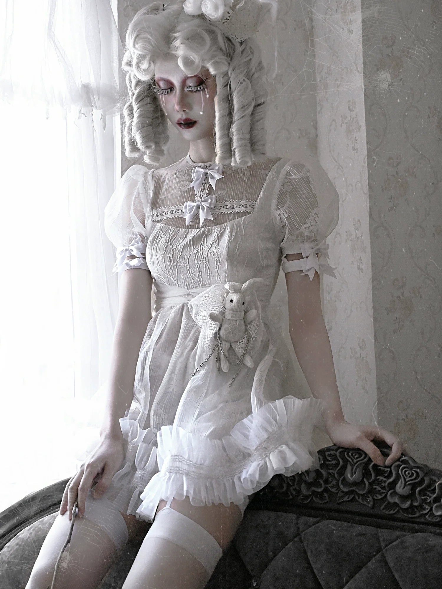 黒と白のオールドスクールロリータファッションドレス蝶結びロリータJSKセット