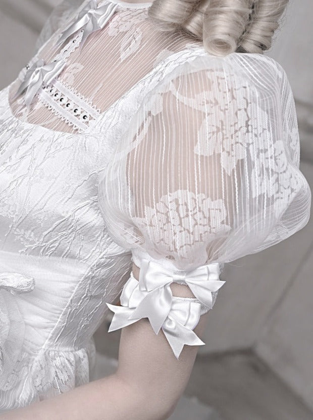 青と白のオールドスクールロリータファッションドレス 蝶結びディテール JSK セット