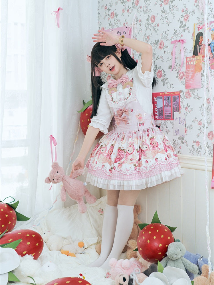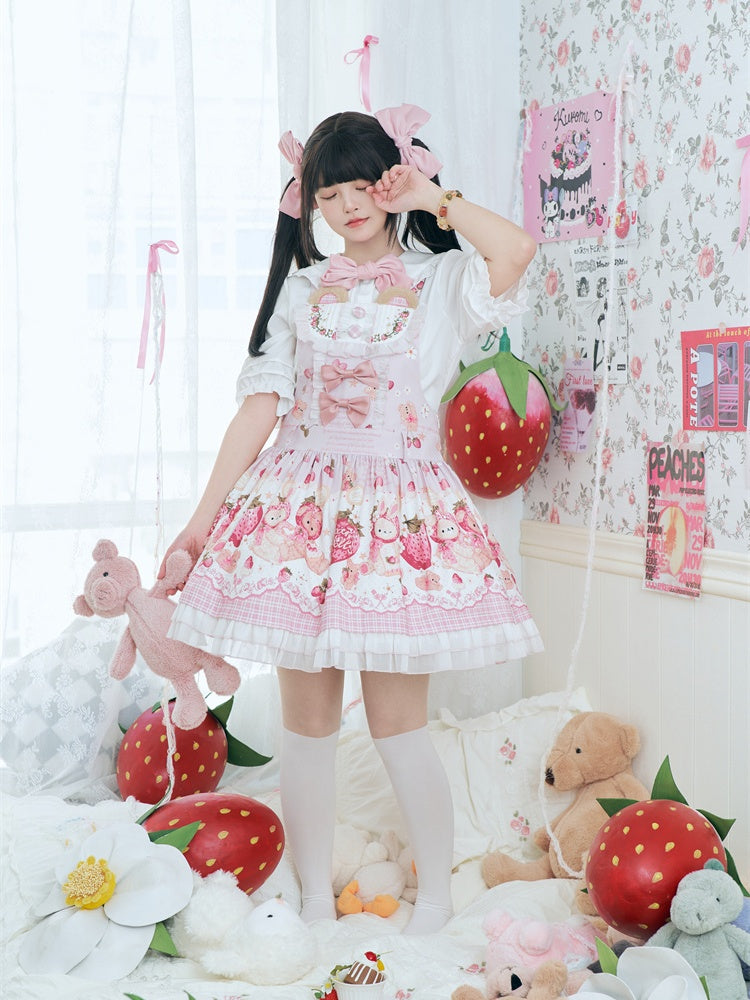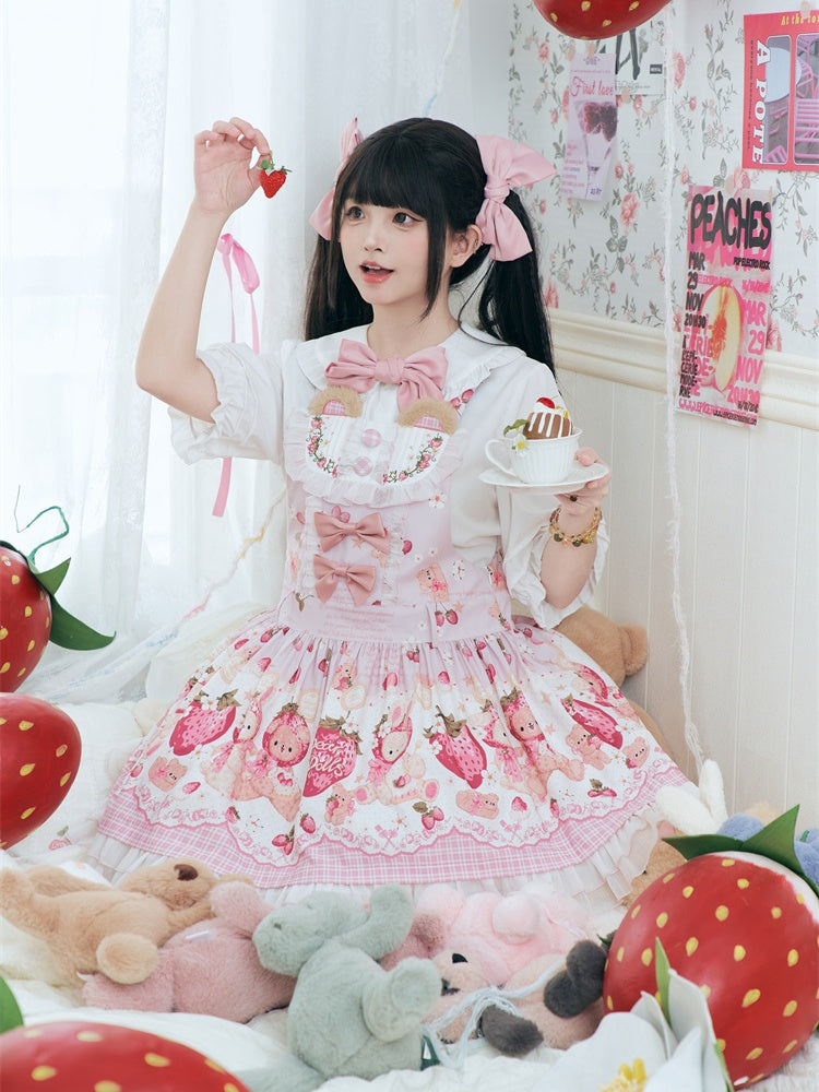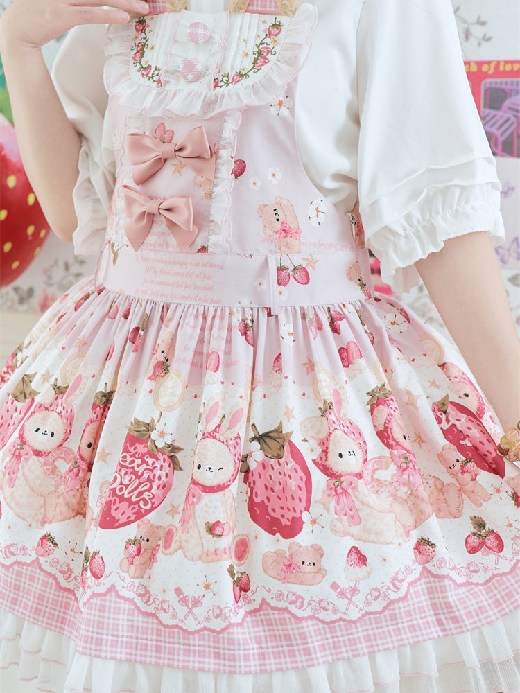 ピンクと白のオールドスクールロリータファッションドレス、蝶結びディテール、ロリータJSKセット