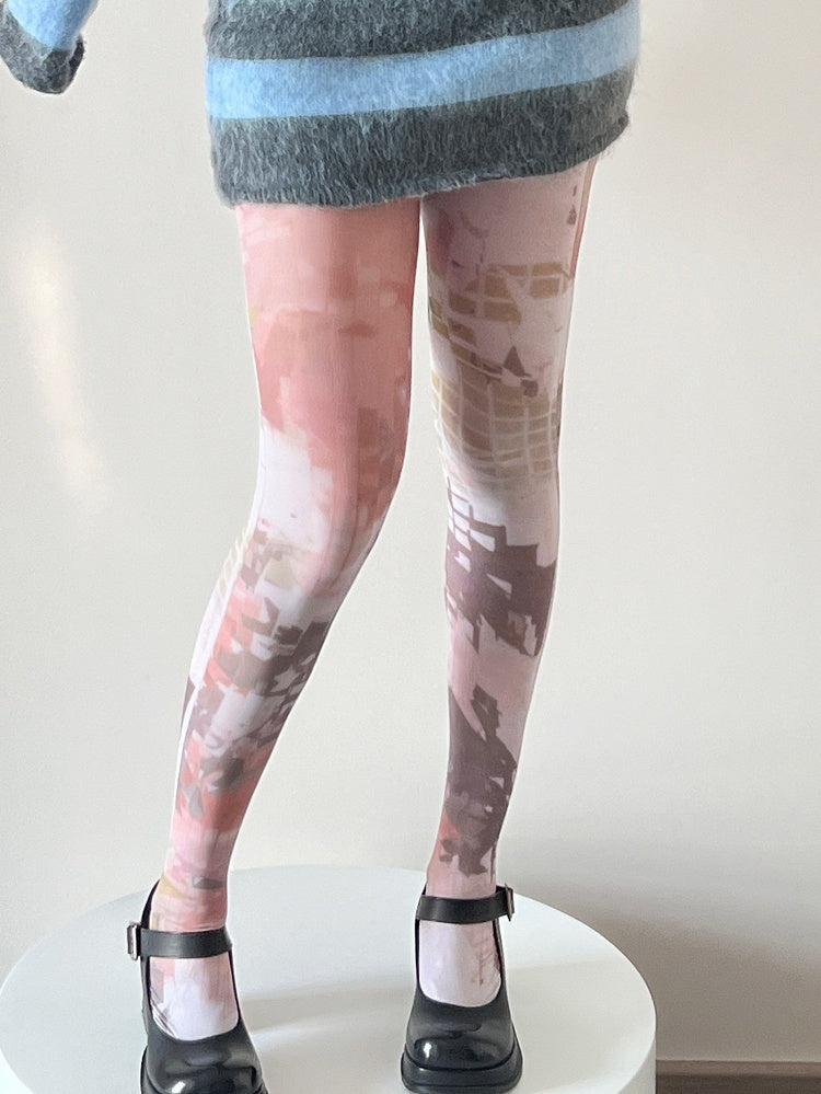 ホワイトプリントデザインタイツ