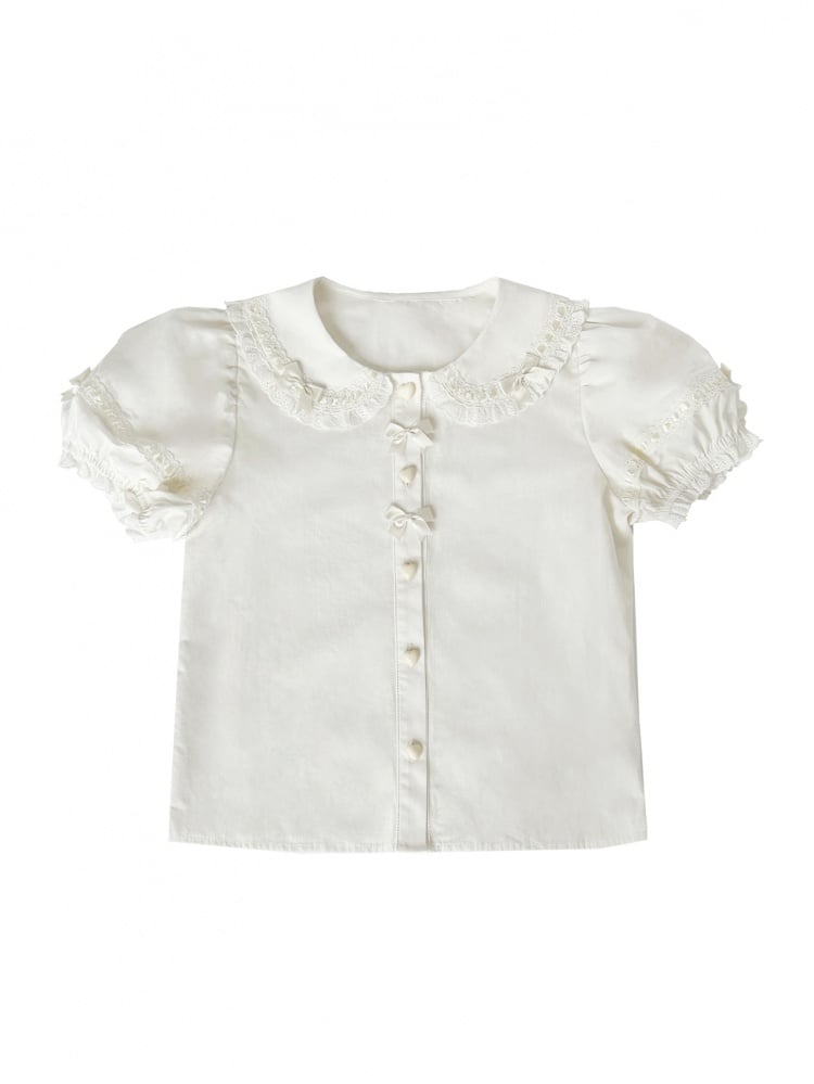 ホワイトパフスリーブスイートロリータブラウスハートボタン