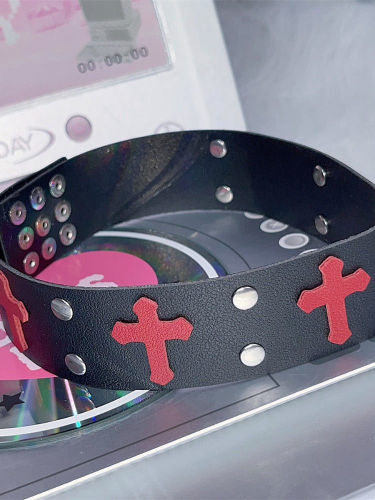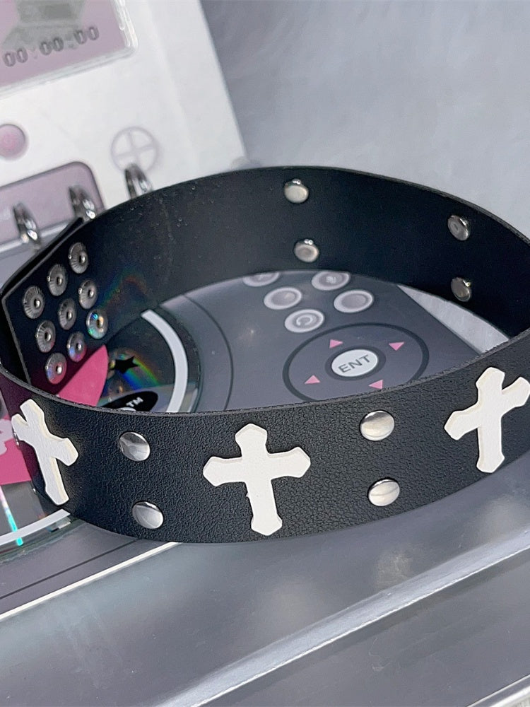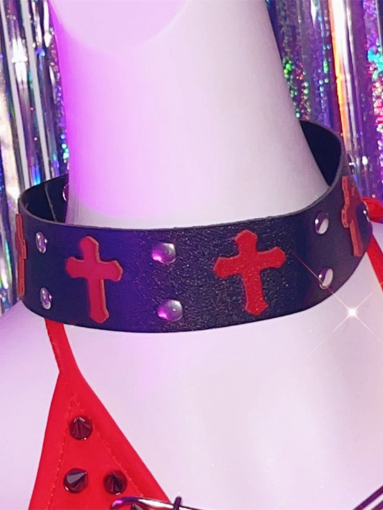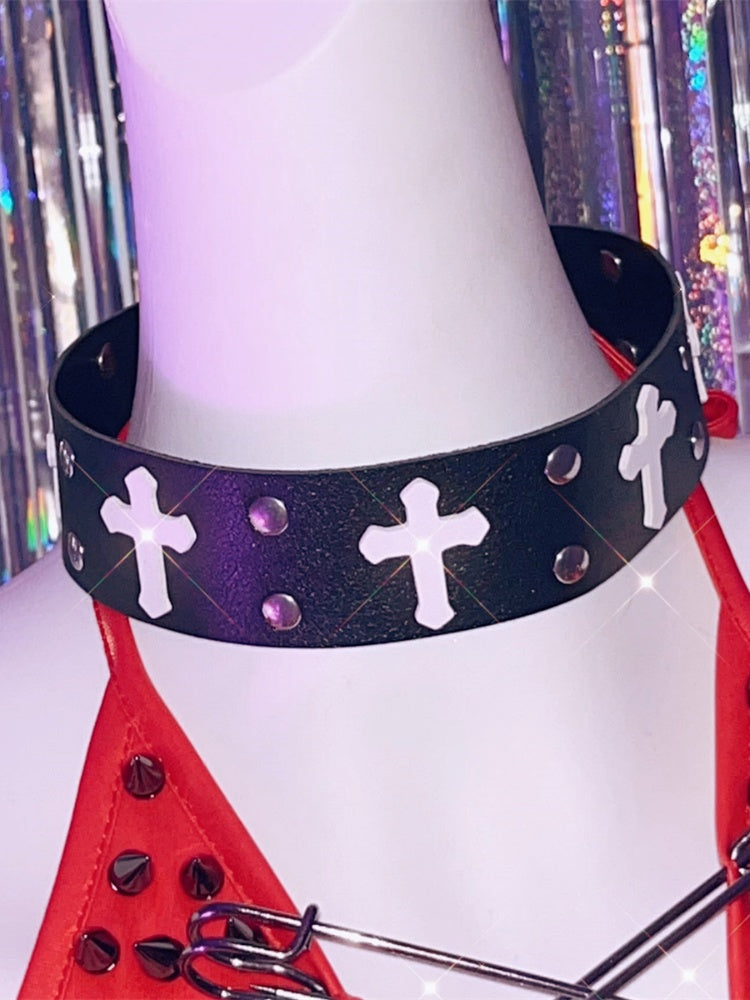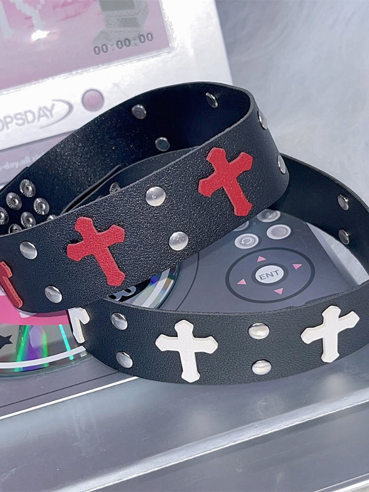 ホワイト/レッドクロススタッドディテールパンクチョーカー