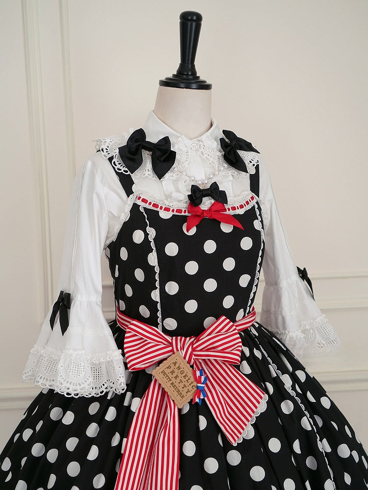 黒と白のオールドスクールロリータファッションドレス蝶結びロリータJSKセット