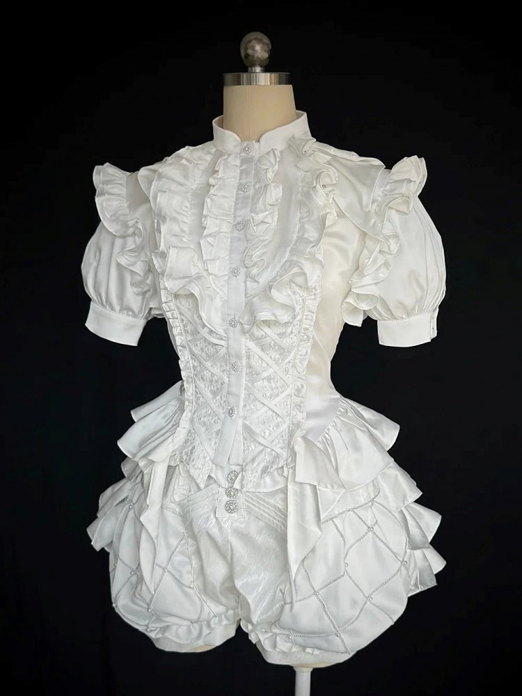 オールホワイト王子ロリータフルセット - 半袖シャツ + ハイウエストブルマーショーツ + ケーププリンス衣装