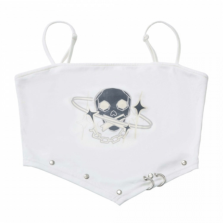ホワイトスケルトンカーブヘムグラマラススタッズキャミトップ