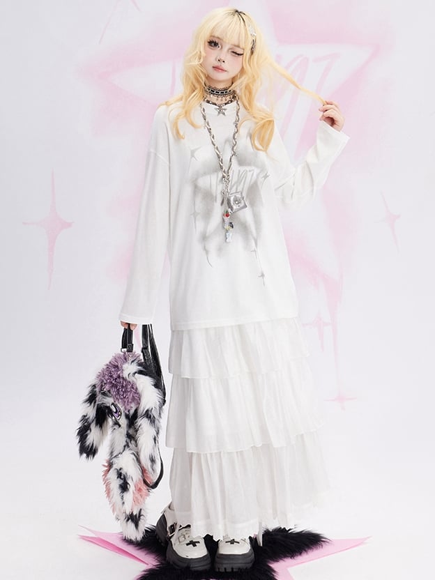 ホワイトスタープリント ルーズロングスリーブTシャツ