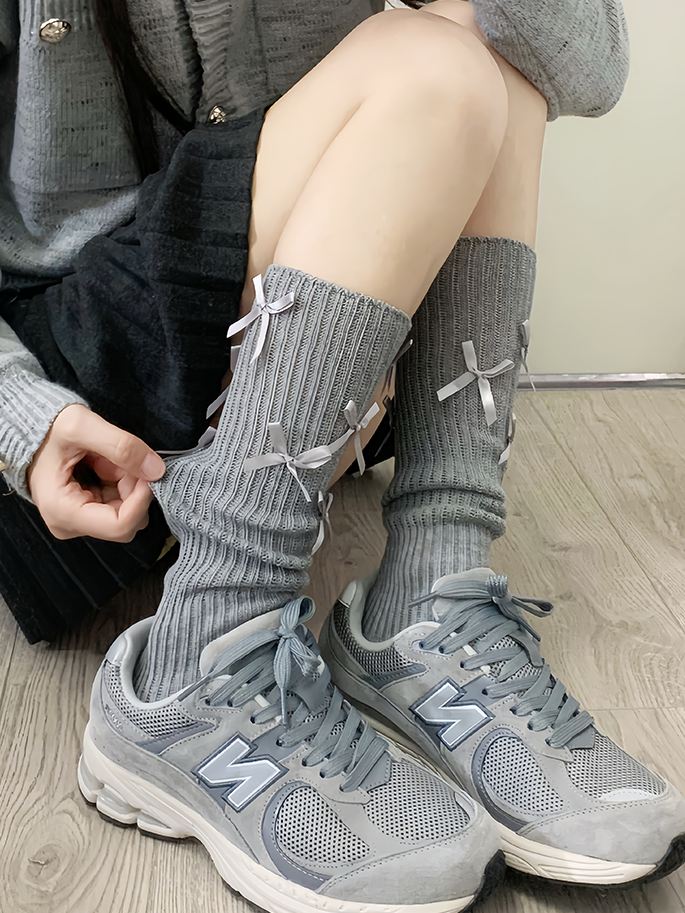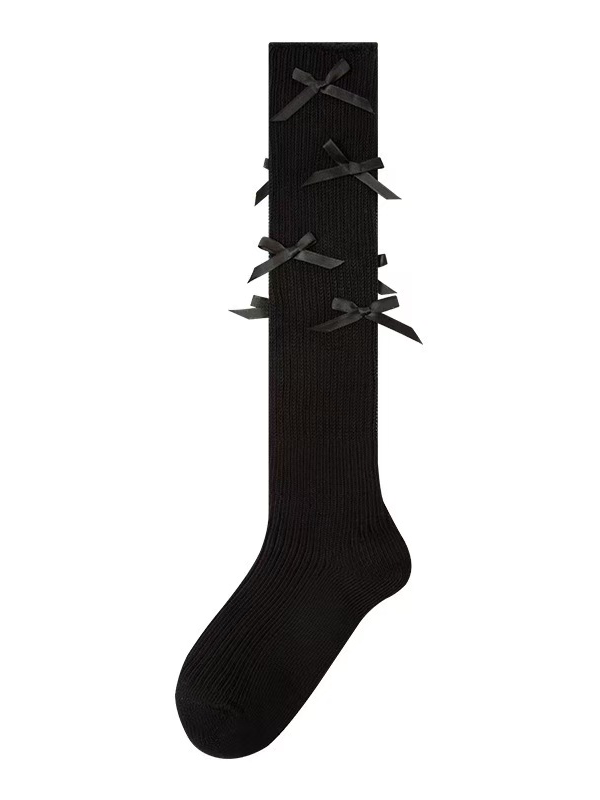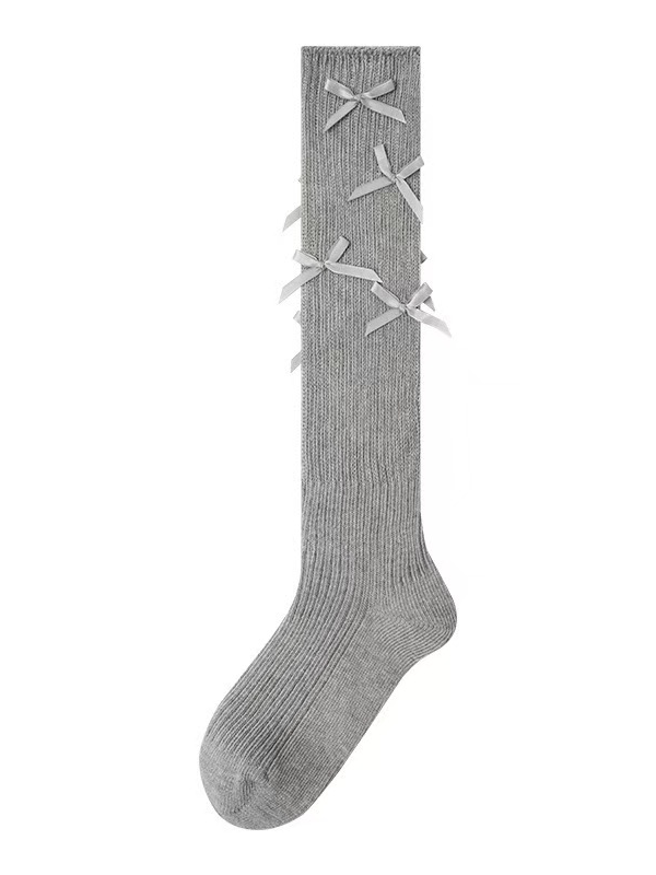 ホワイトのスイートな蝶結びカーフソックス