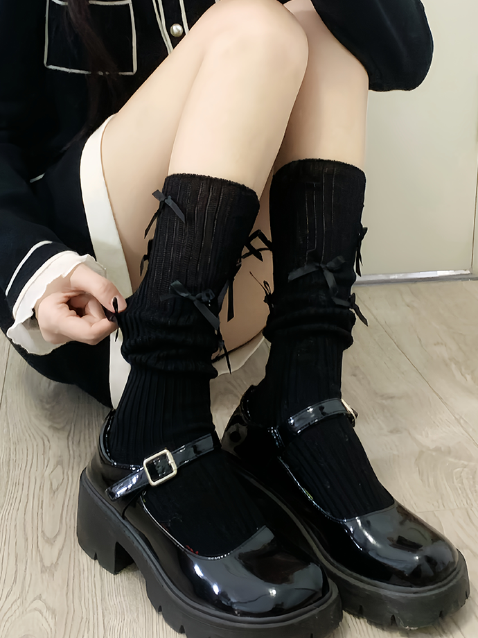 ホワイトのスイートな蝶結びカーフソックスは、可愛らしさだけでなく、快適で実用性も兼ね備えています。上質な素材で作られたこのソックスは、足を暖かくスタイリッシュに保ちます。スイートな蝶結びがどんな装いにも華やかさを添えます。