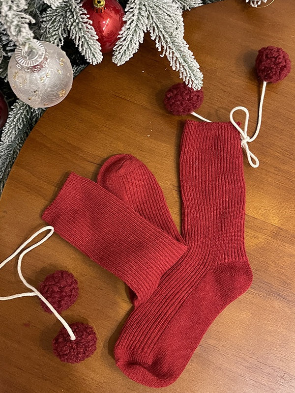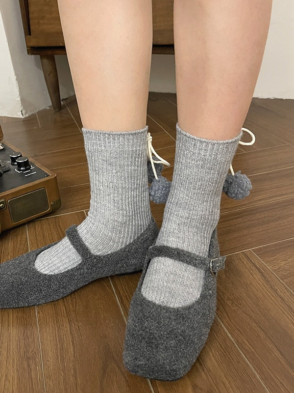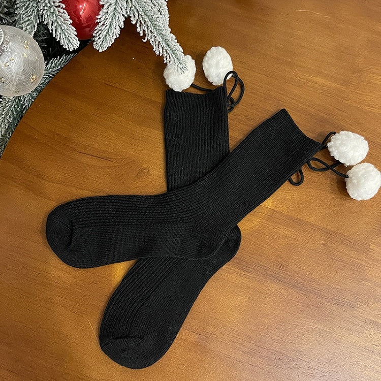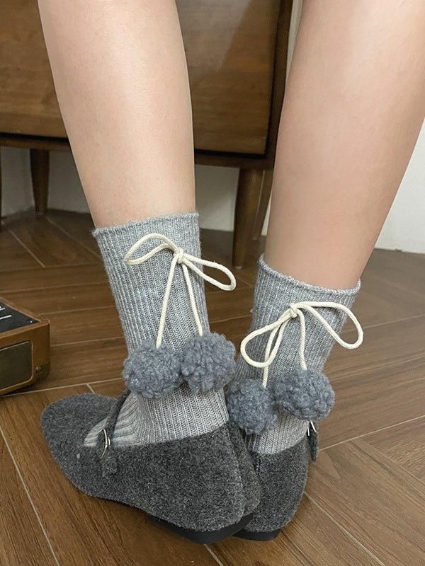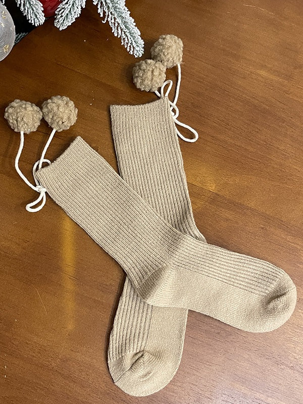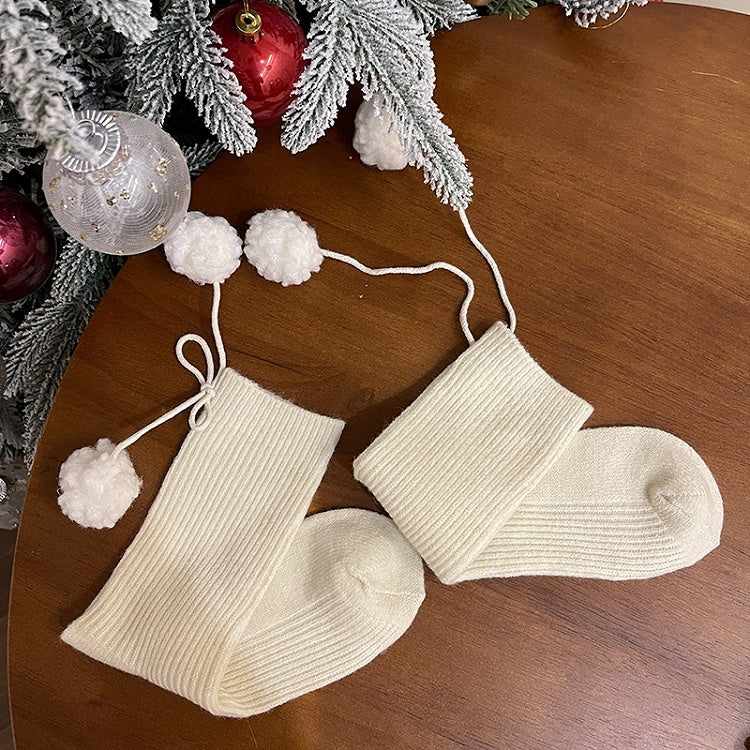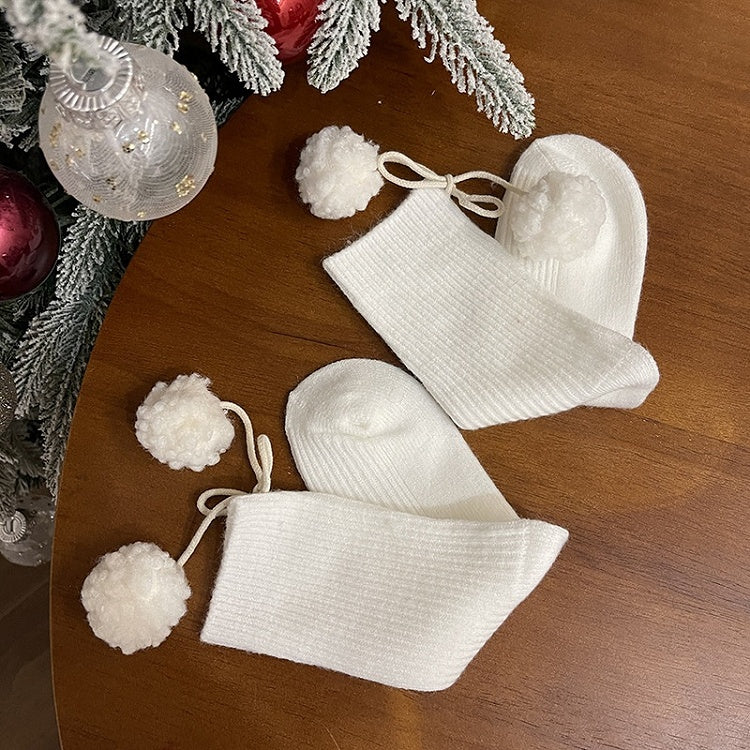 ポンポン付きホワイトスイートカーフソックス