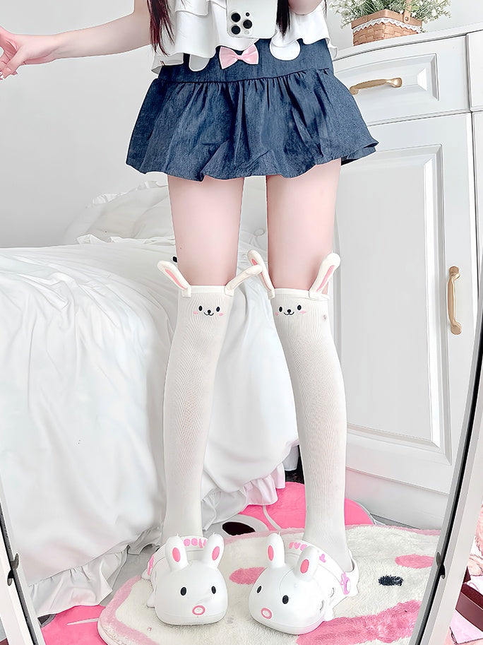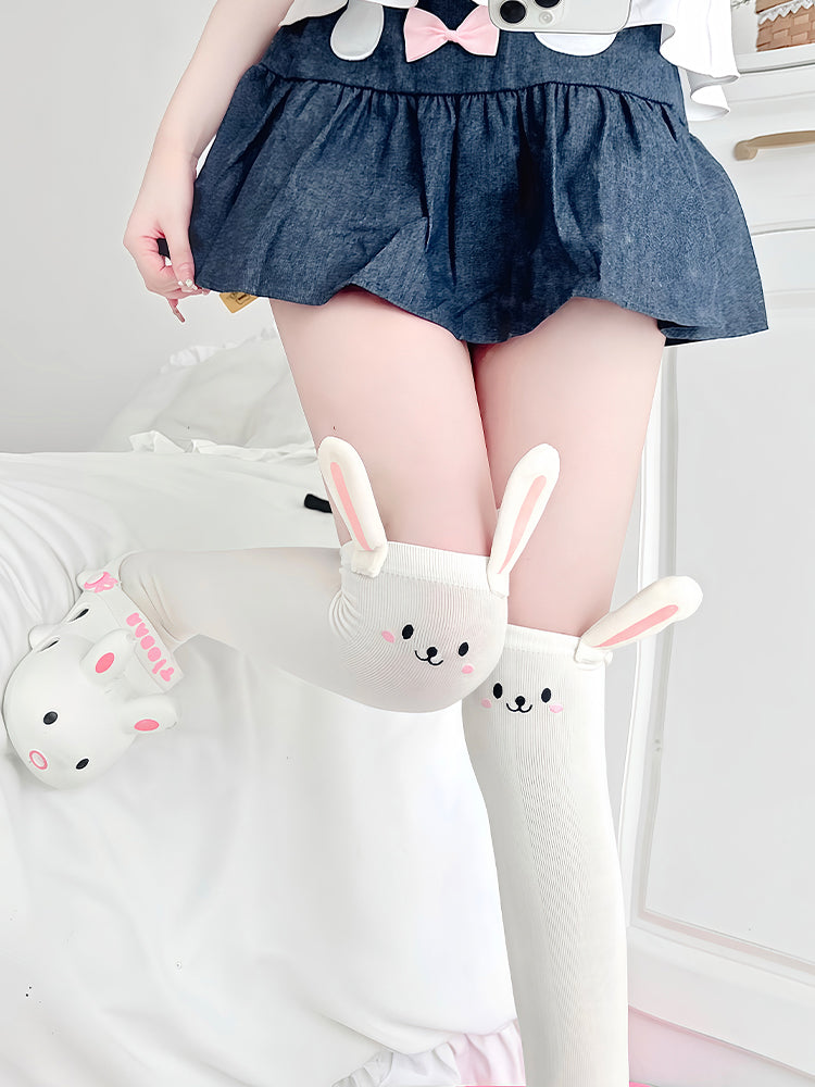 ホワイトのスイートロリータバニー耳オーバーニーストッキング