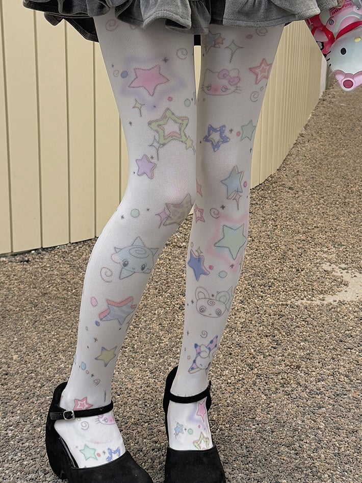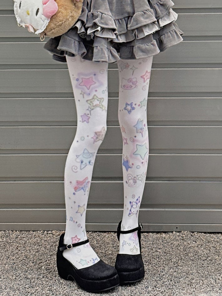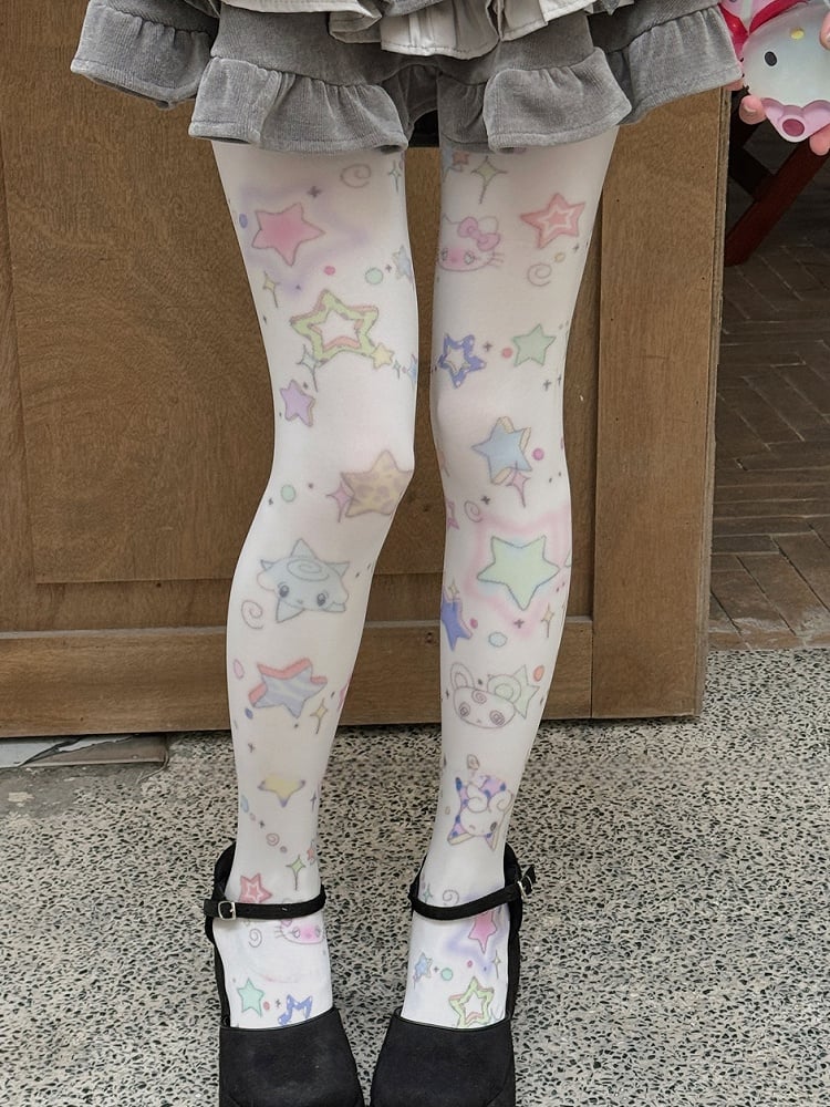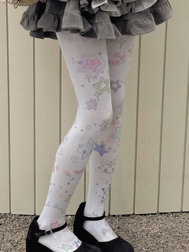 ホワイトのスイートスタープリントタイツで、キュートで快適な着心地をキープ。柔らかく快適な素材を使用し、愛らしい星柄プリントが目を惹きます。どんなコーディネートにも、甘さをプラスしてくれるアイテムです。