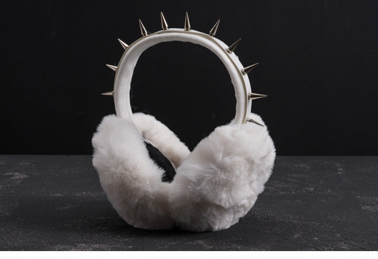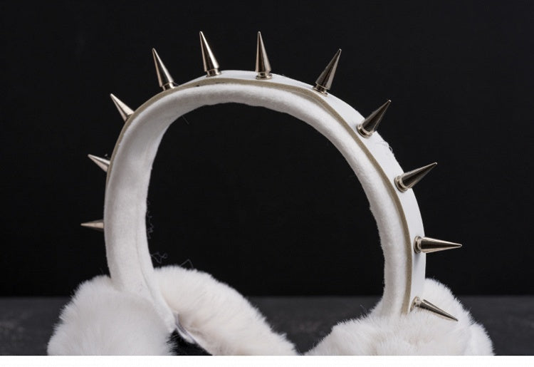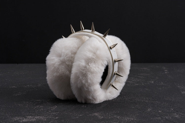 白いハンドメイドのスタッズ付きプラッシュイヤーマフ
