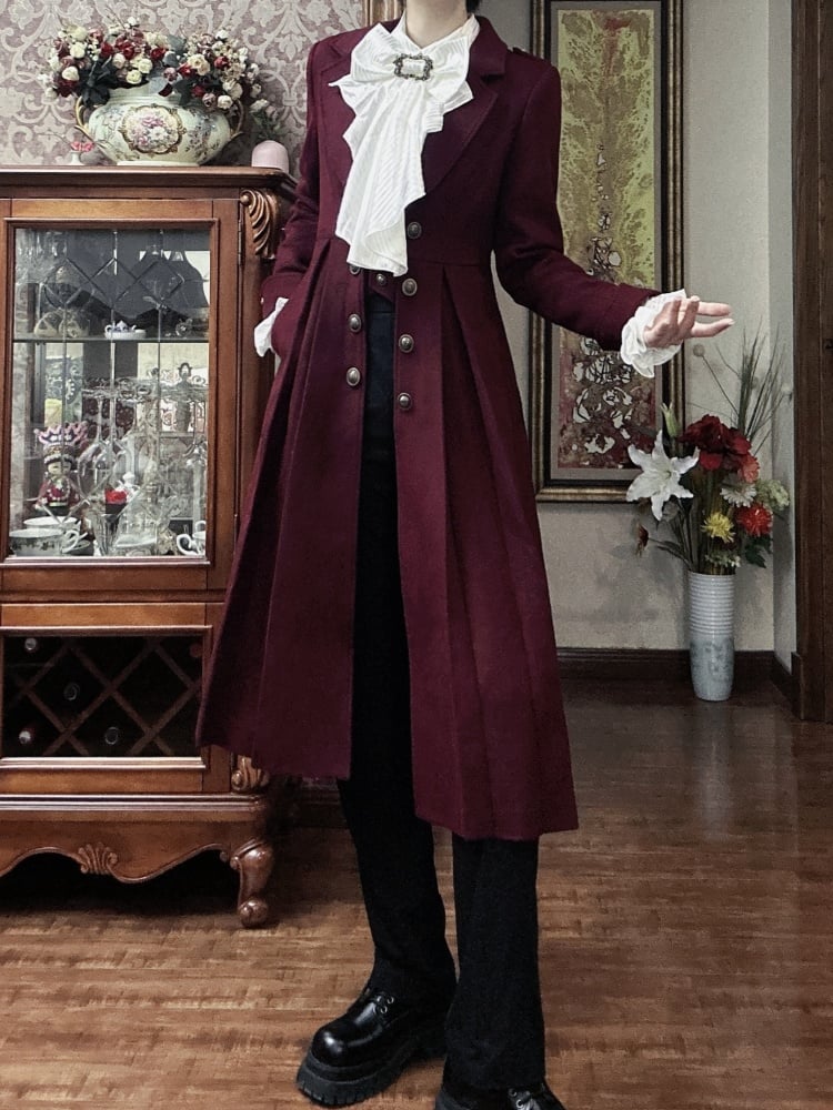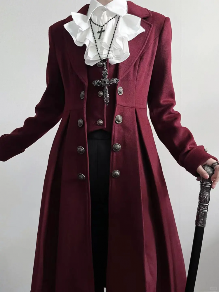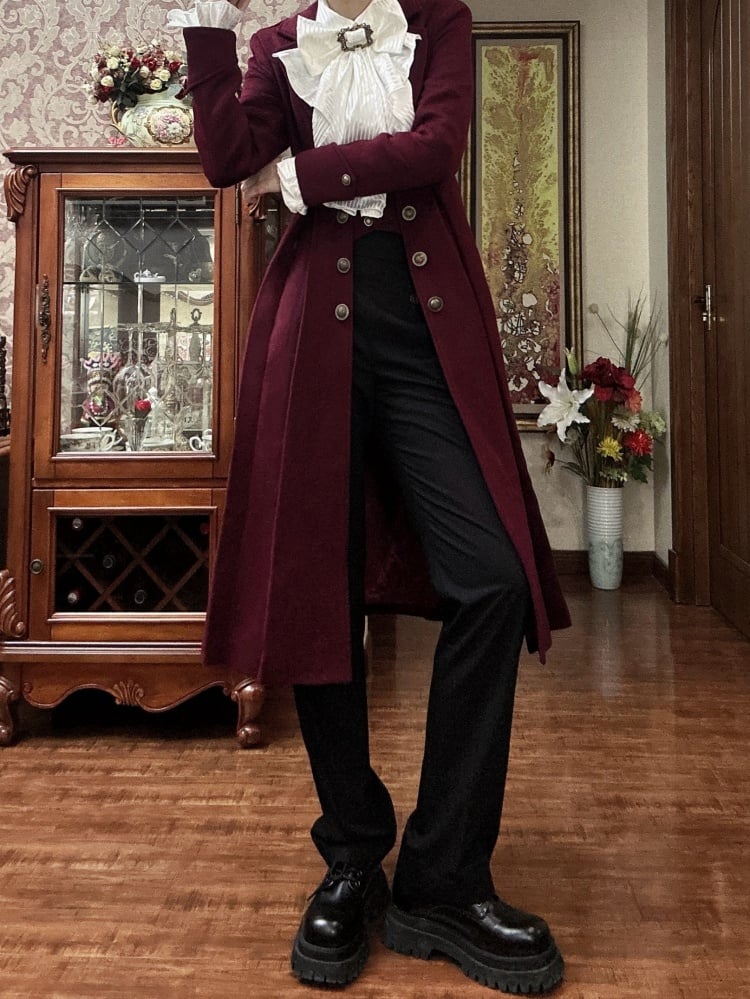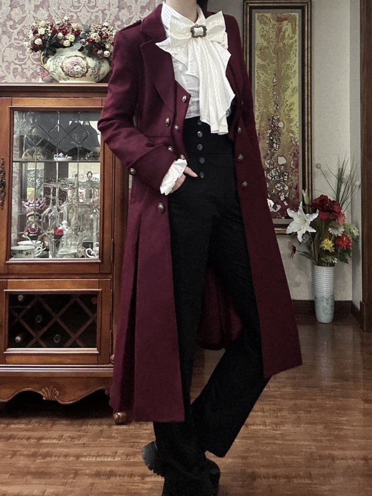 ワインレッド王子ファッションロリータゴシックプリンス冬ウールコート