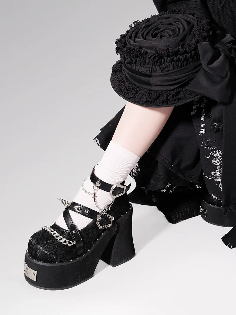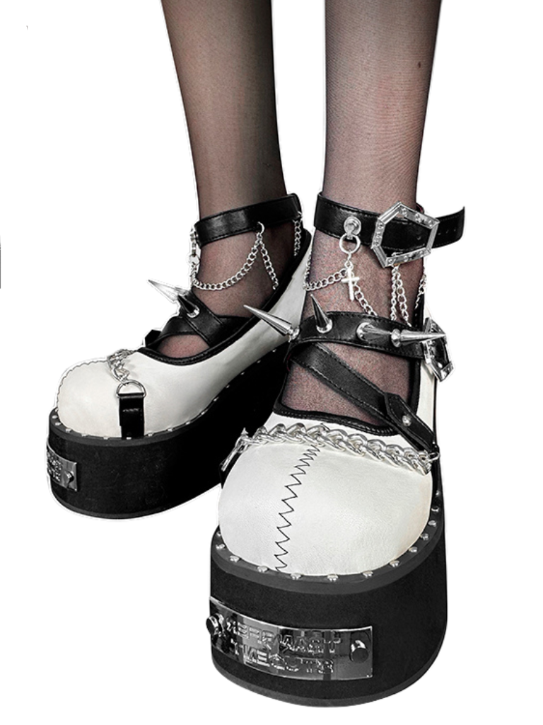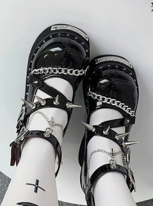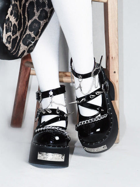 魔女パンクラウンドシューズリベットダークローズプラットフォームトゥ