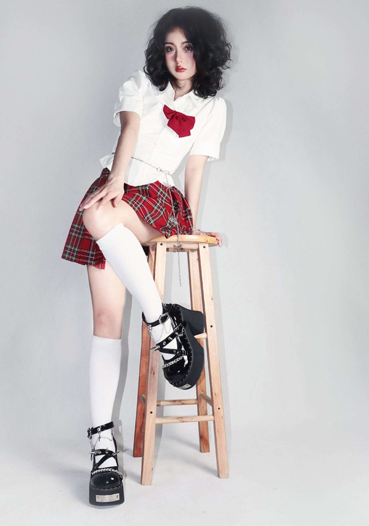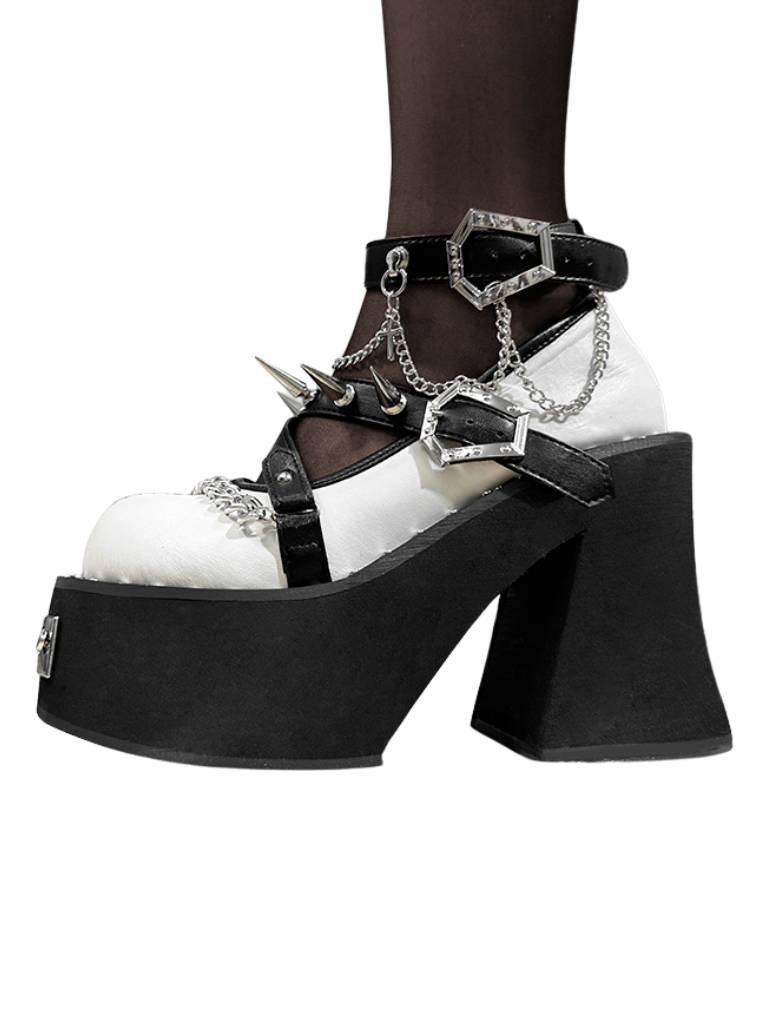 ウィッチパンクのラウンドトゥシューズは、どんな装いにも大胆でエッジの効いたタッチをプラス。ダークローズのプラットフォームシューズとリベットのディテールが特徴で、スタイリッシュでありながら実用性も兼ね備えています。キュートで個性的なラウンドトゥシューズで、スタイルをワンランクアップさせましょう。