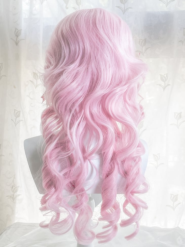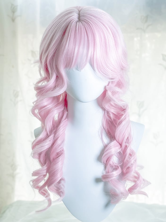 桜ピンク 70cm ウェーブウィッグ(前髪あり)