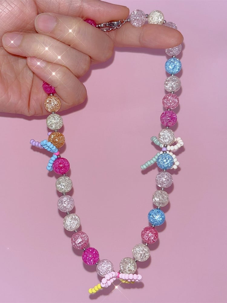 With Bowknot Details Colorful Necklace Y2K Beaded