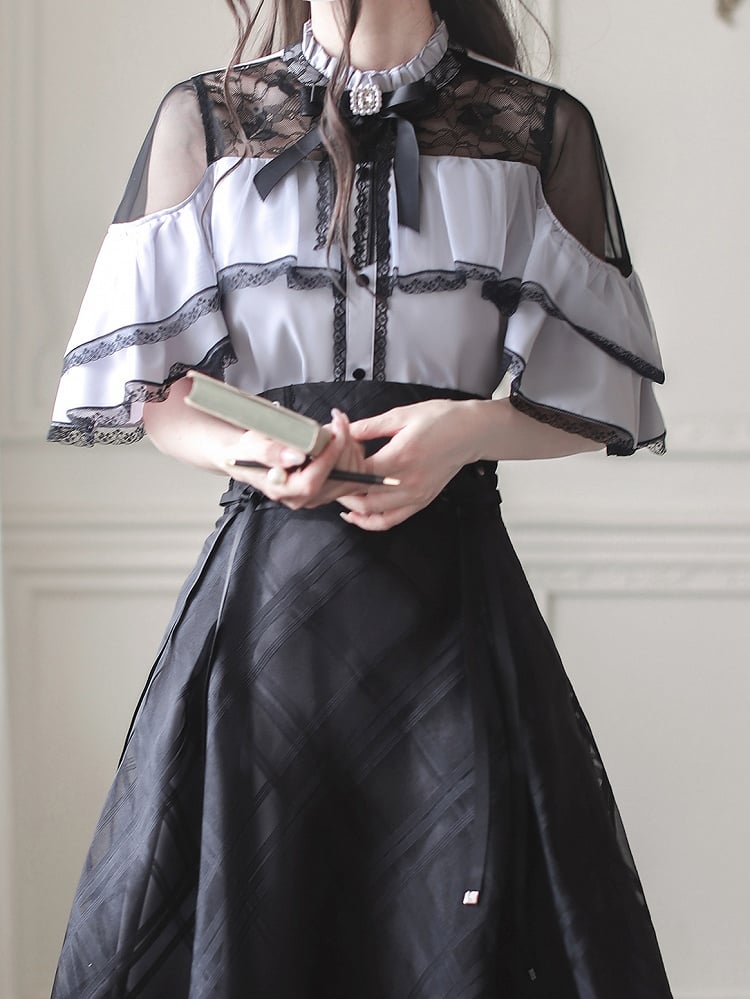 黒と白のオールドスクールロリータファッションドレス蝶結びロリータJSKセット