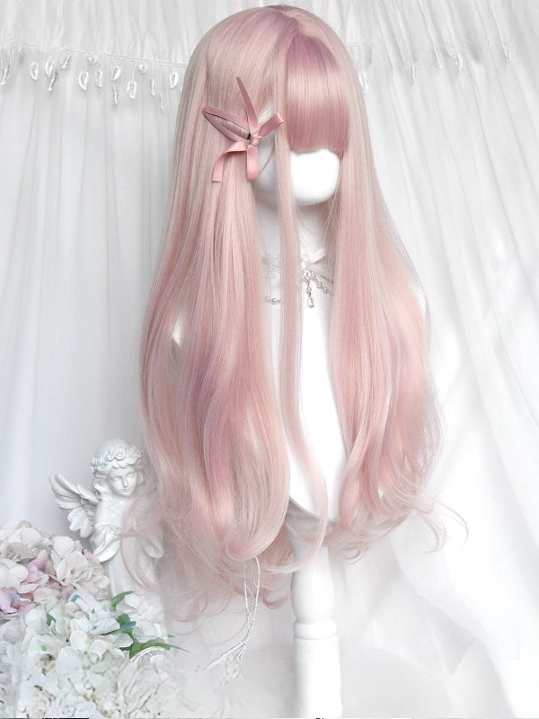 フルレングスウィッグ ピンク前髪 62CM ウェーブ