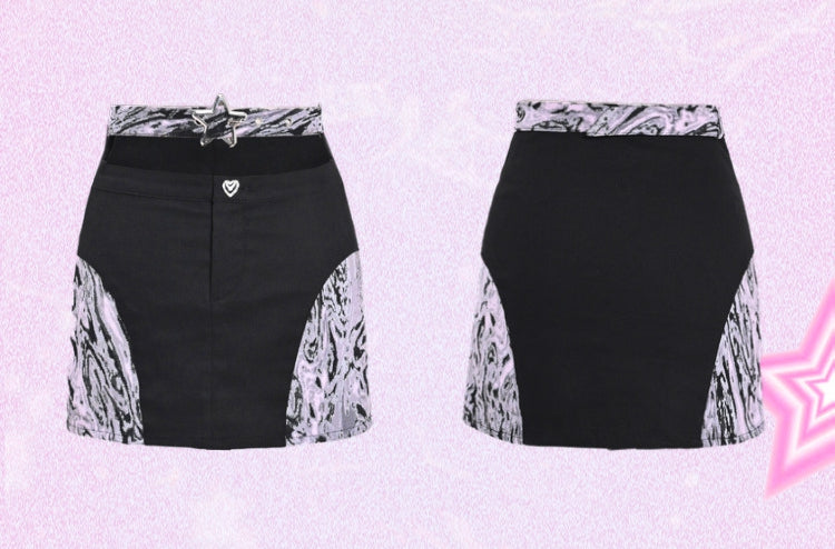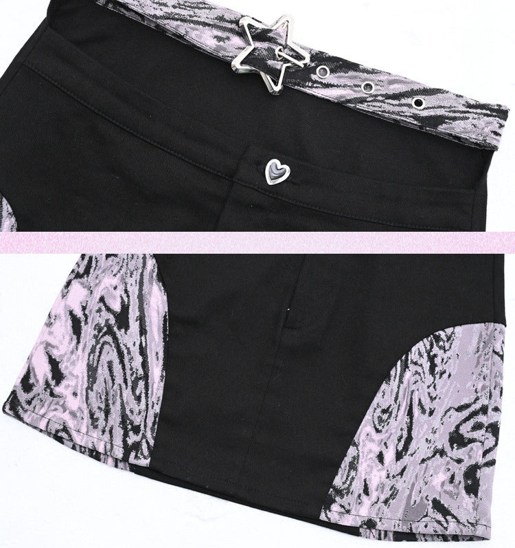 Y2Kフィットミニスカート スターバックル カットアウトウエスト