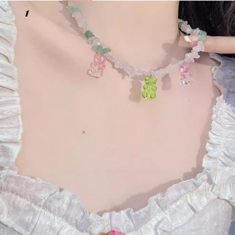 愛らしいY2Kマクロン・グミベア・セットで、自分を飾りましょう!ネックレス、リング、ブレスレットが入った万能なセット。どれもアイコニックなグミベアデザインです。キュートな一面をアピールして、どんな装いにも甘さをプラスしましょう。