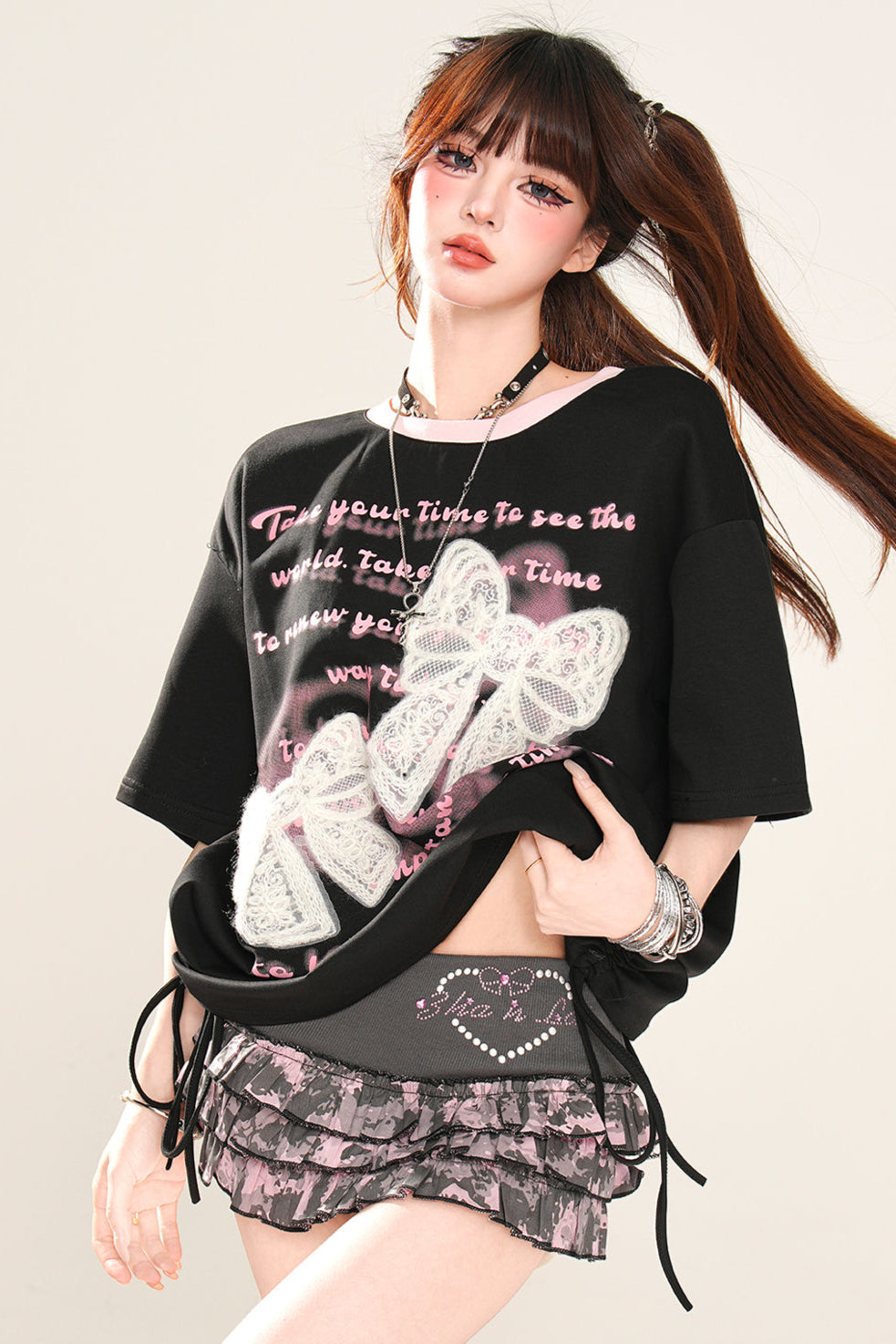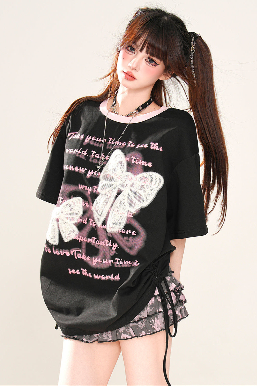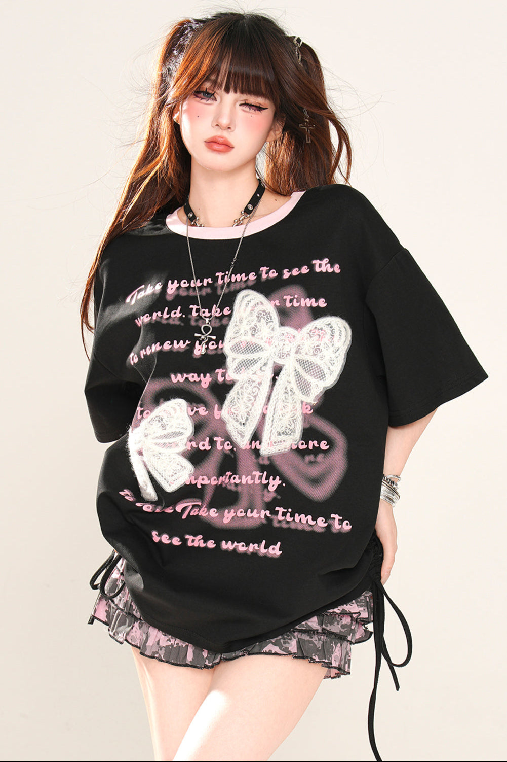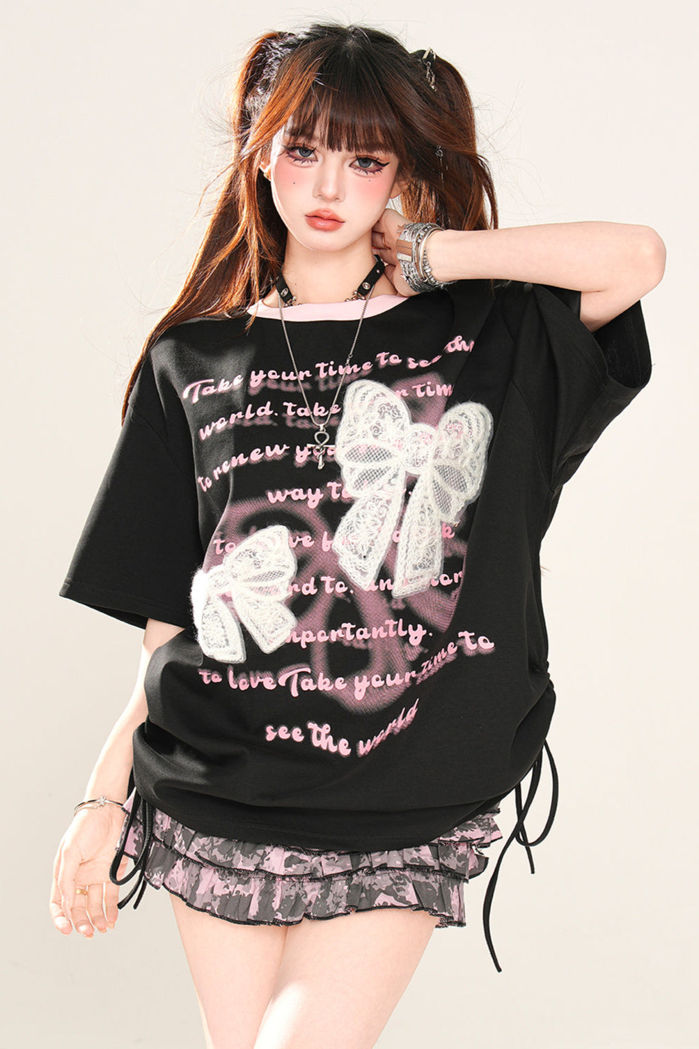 ピンクと白のオールドスクールロリータファッションドレス、蝶結びディテール、ロリータJSKセット