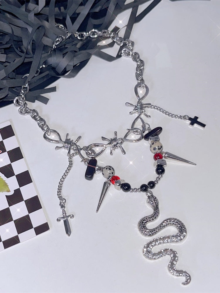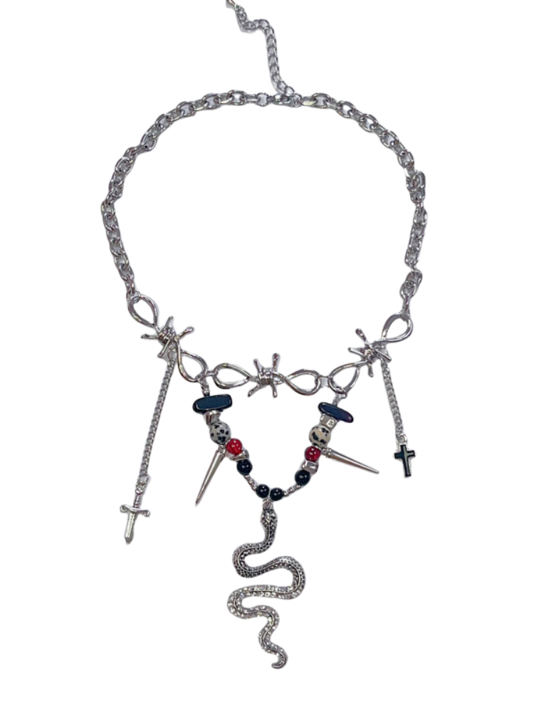 Y2K 蛇型チャームパンクネックレス