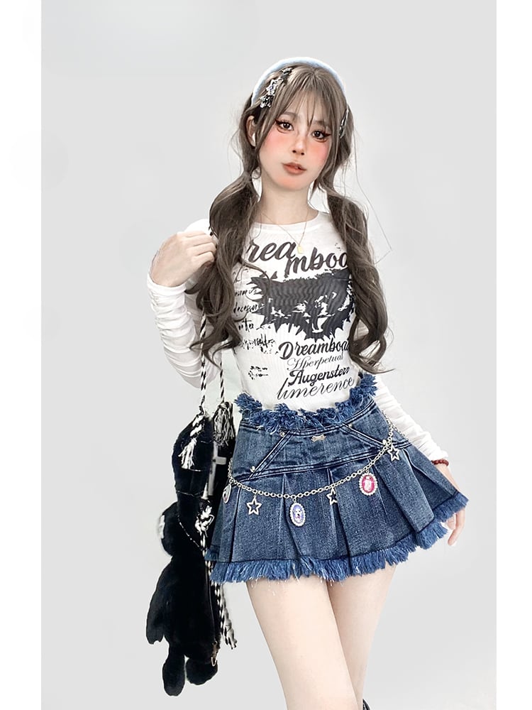 Y2Kヴィンテージのダークブルーディストレストリムデニムグラマラススカートと、バックルストラップのプラッシュトリムレッグウォーマーで、レトロとモダンの完璧な融合をご体感ください。快適さとスタイルを兼ね備えたスタイリッシュなアイテムで、街一番キュートなファッショニスタに変身させましょう!