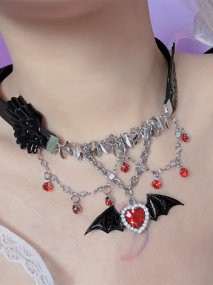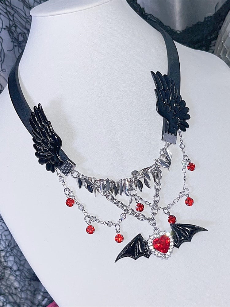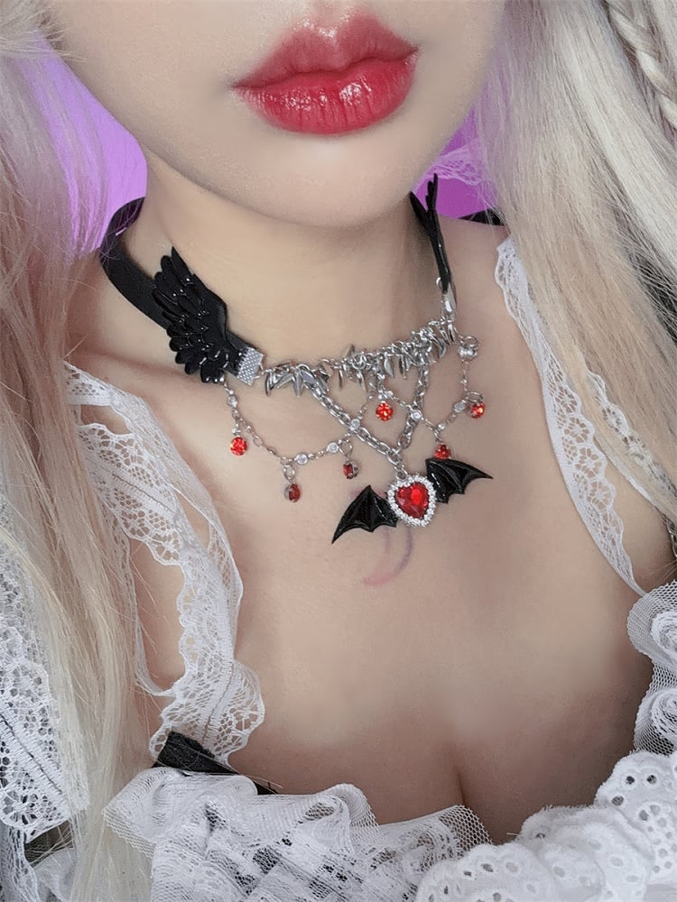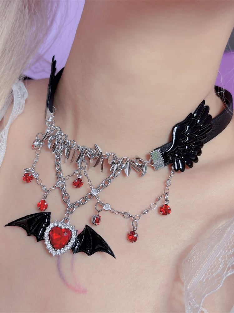 Y2K ウィングハート型ペンダントパンクチョーカー