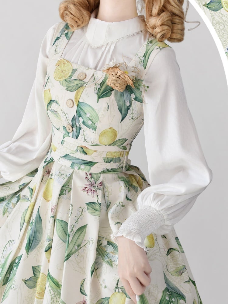 イエローとグリーンのレモン柄がエレガントなクラシックロリータドレスで、キュートでファッショナブルな装いを。鮮やかな色彩とエレガントなデザインが、あなたをきっと引き立てます。どんなシーンにもぴったりの、この素敵なドレスであなただけの個性的なスタイルを披露しましょう。