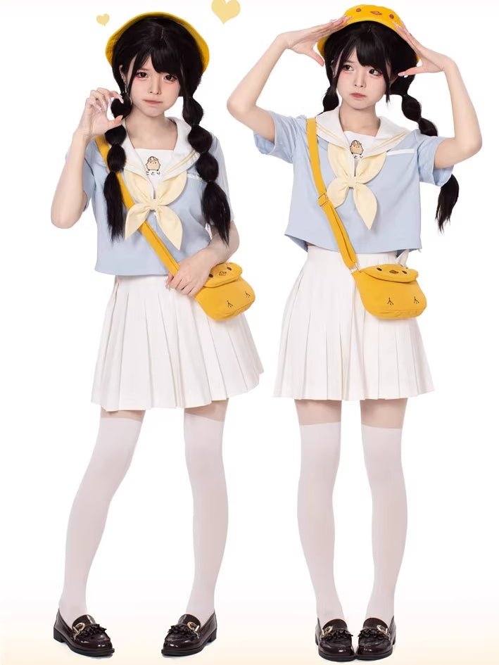 青と白のオールドスクールロリータファッションドレス 蝶結びディテール JSK セット