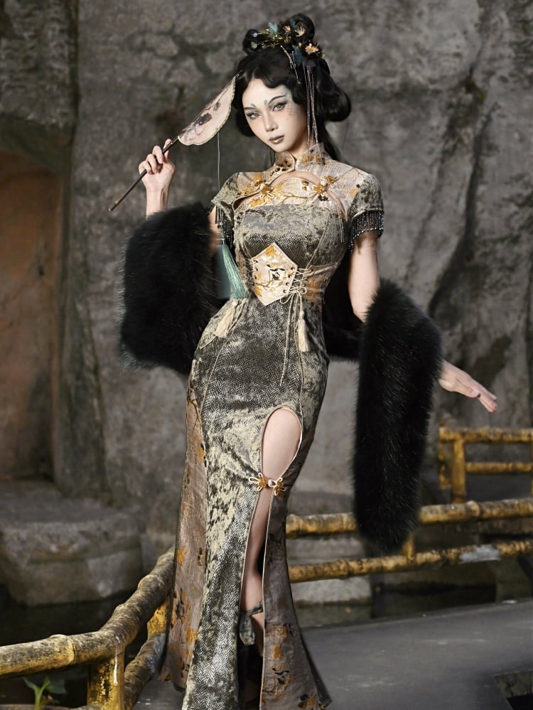 イエローのレースアップタッセルシノワズリコルセットベルト