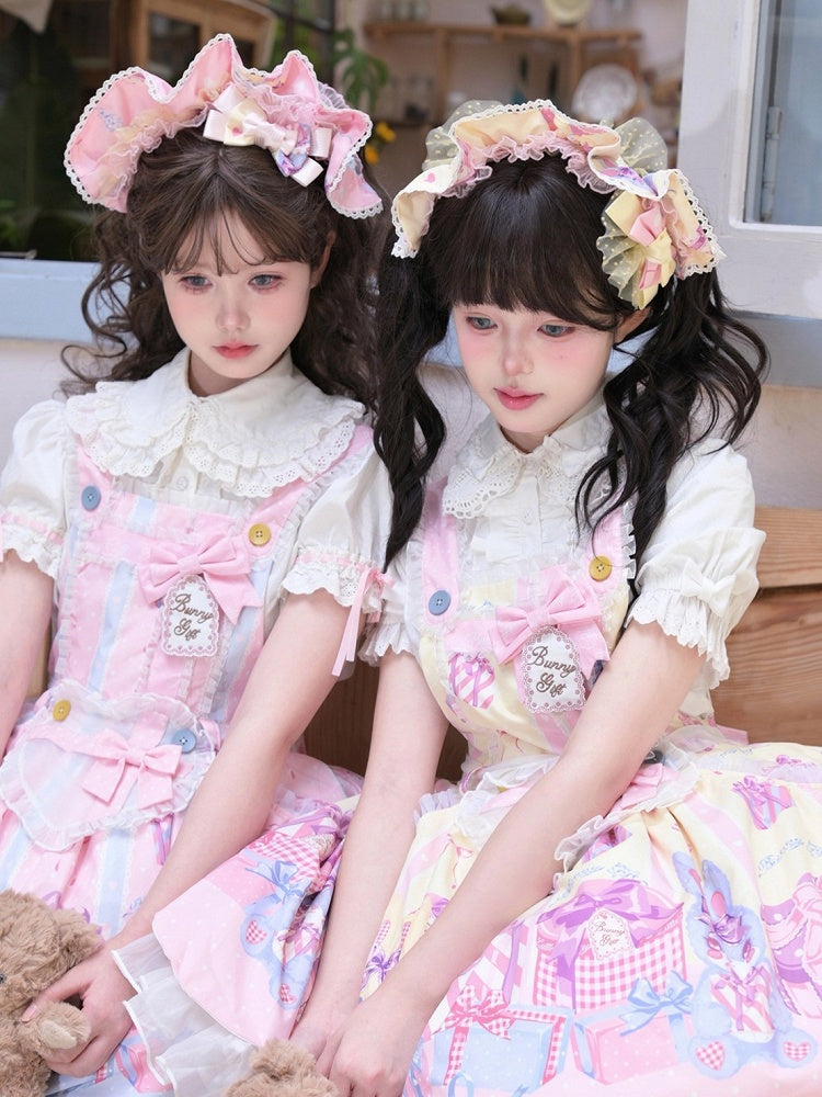 ピンクと白のオールドスクールロリータファッションドレス、蝶結びディテール、ロリータJSKセット