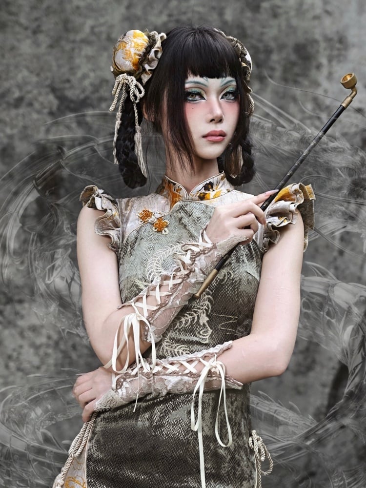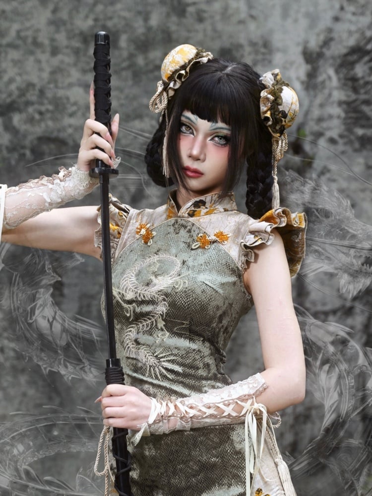 黒と白のオールドスクールロリータファッションドレス蝶結びロリータJSKセット